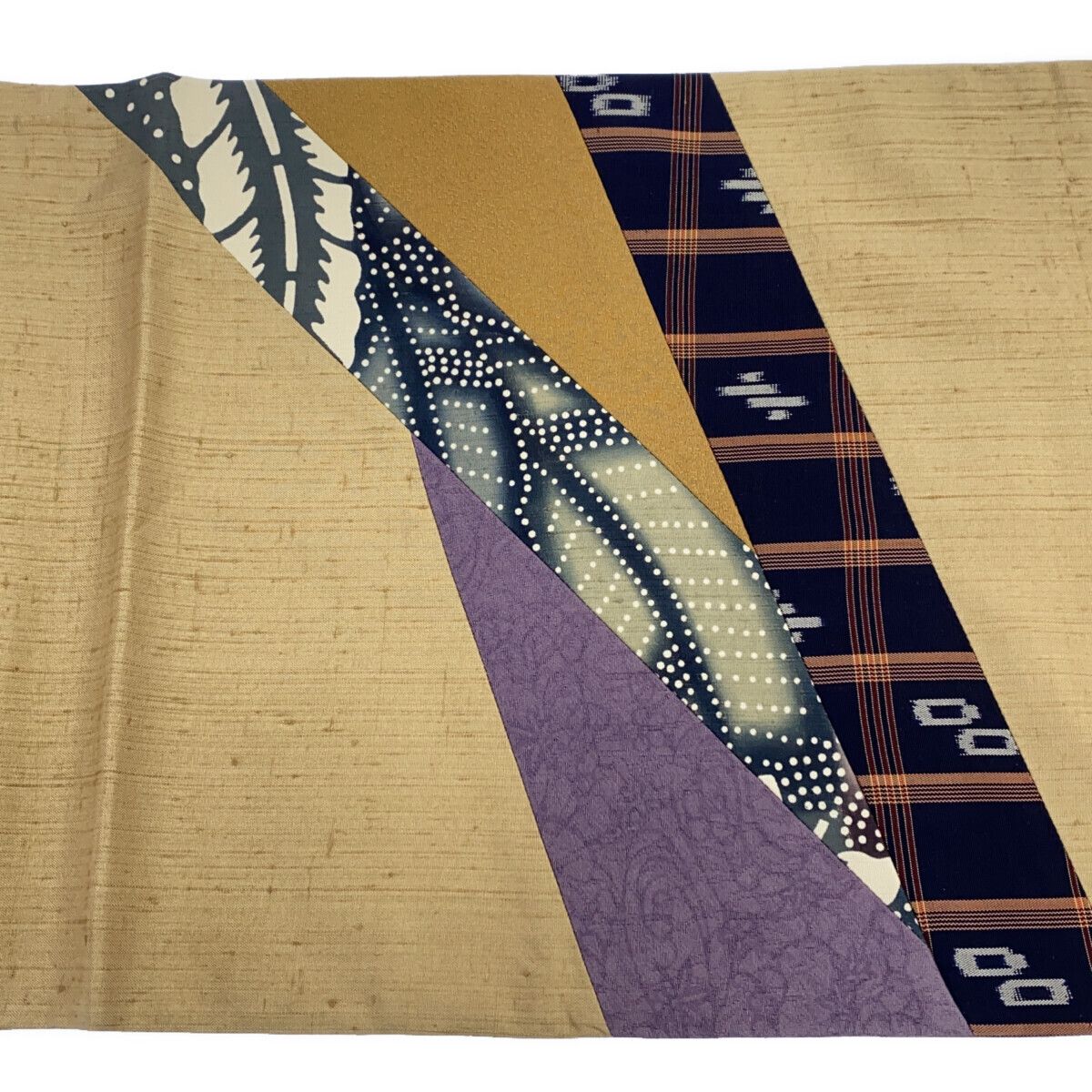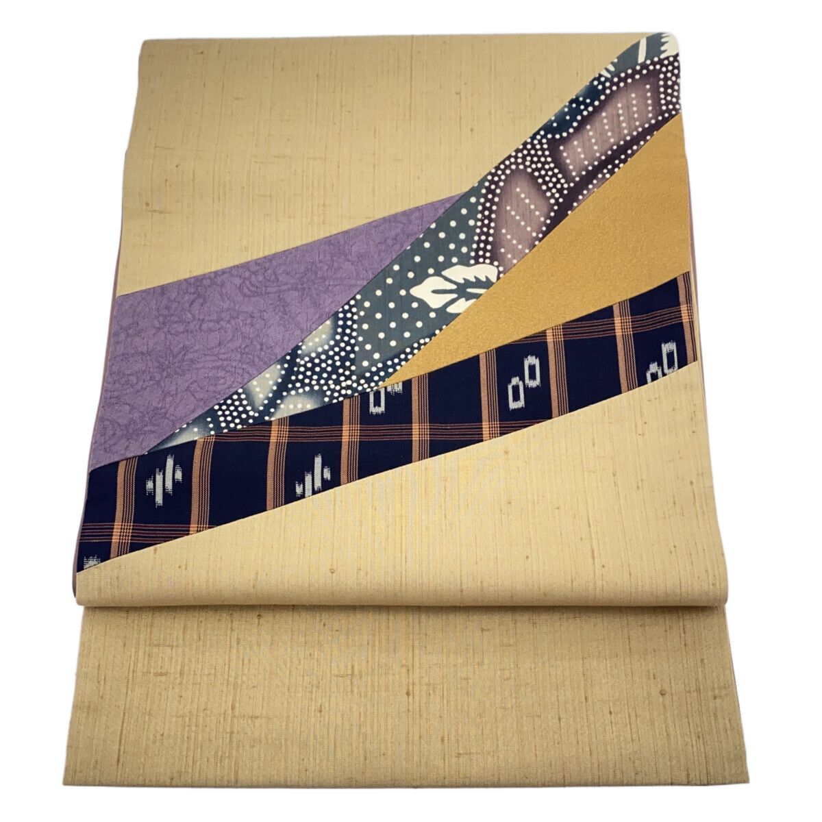 袋帯/紬/きりばめ/美品/ベージュ/仕立上がり/12168