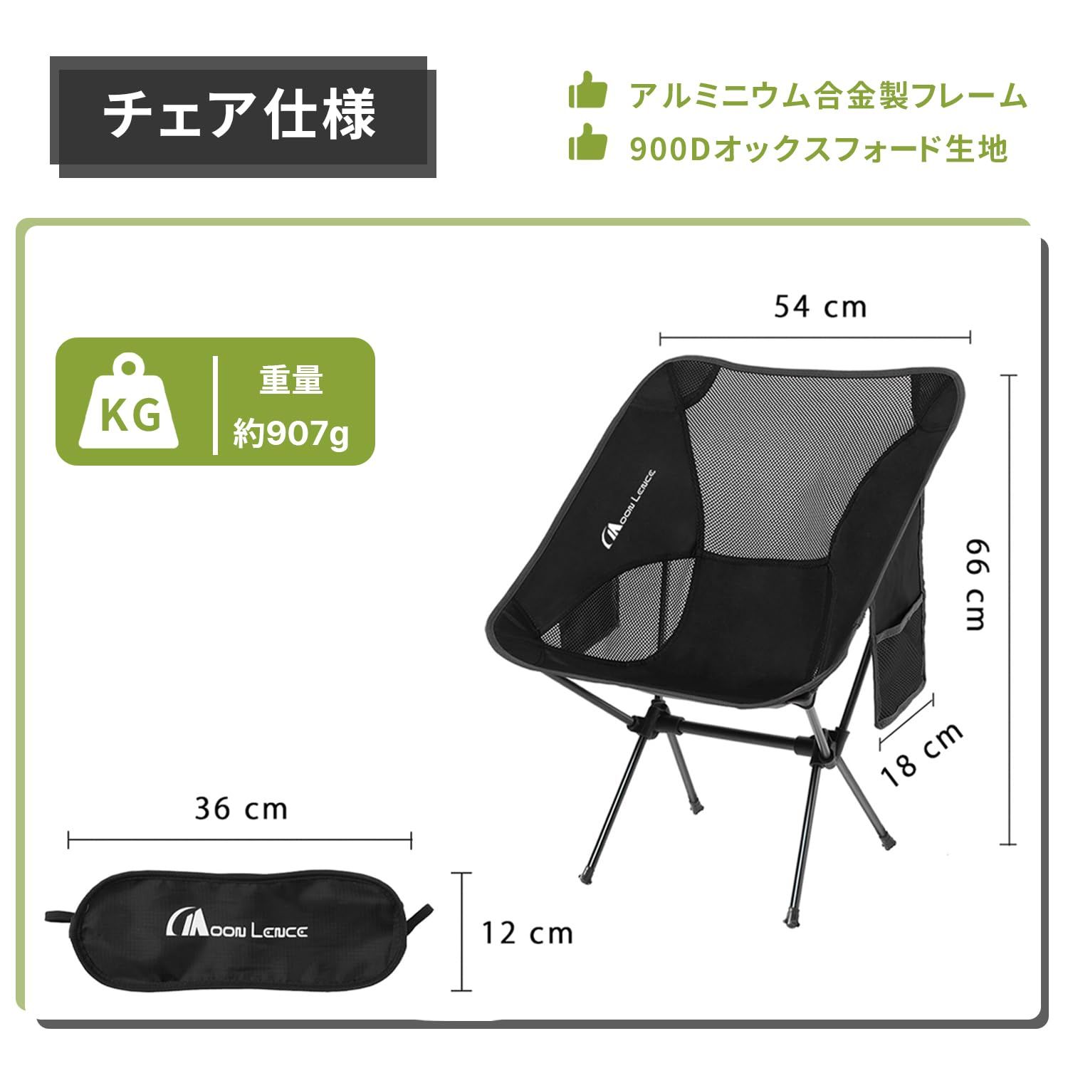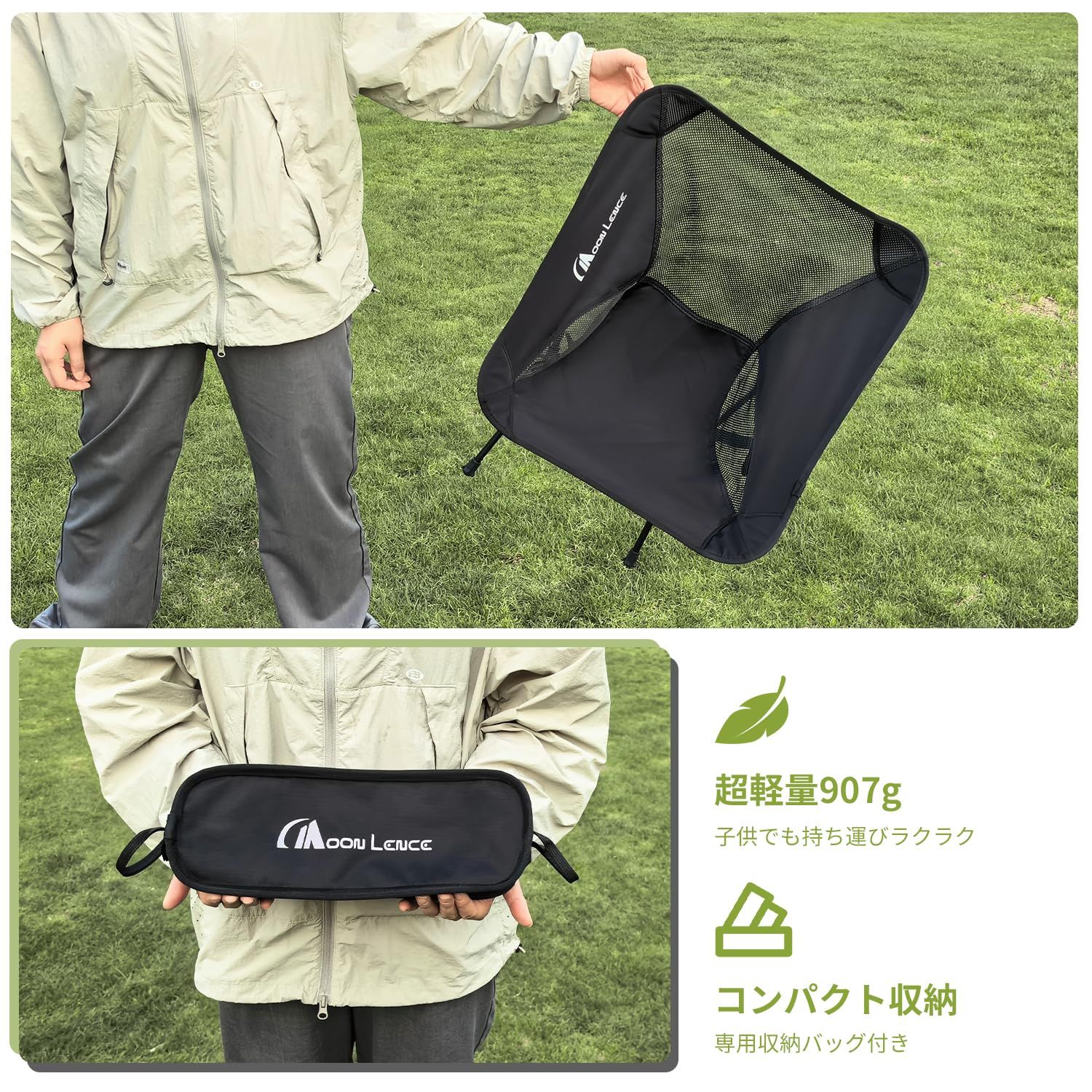 MOON LENCE アウトドア チェア キャンプ 椅子 折りたたみ コンパクト 超軽量907g 耐荷重150kg ローチェア 収納バッグ付き ハイキング お釣り 登山 7色/1個入り/2個セット