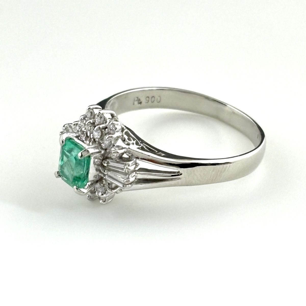 【素材】Pt900、エメラルド、ダイヤモンド【実寸サイズ】約15号
