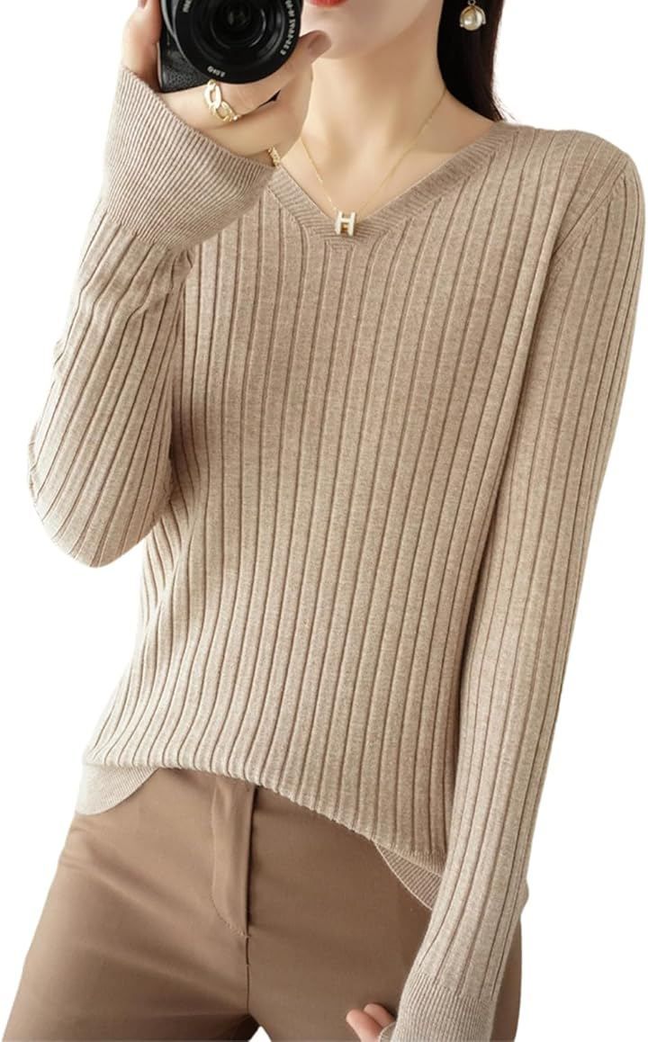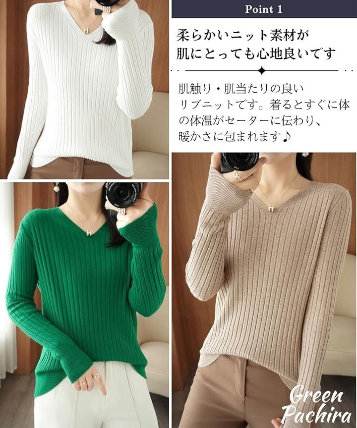 「何度も着たくなる肌触り」◉秋・冬に欠かせないレディースの長袖 Vネックセーターです。