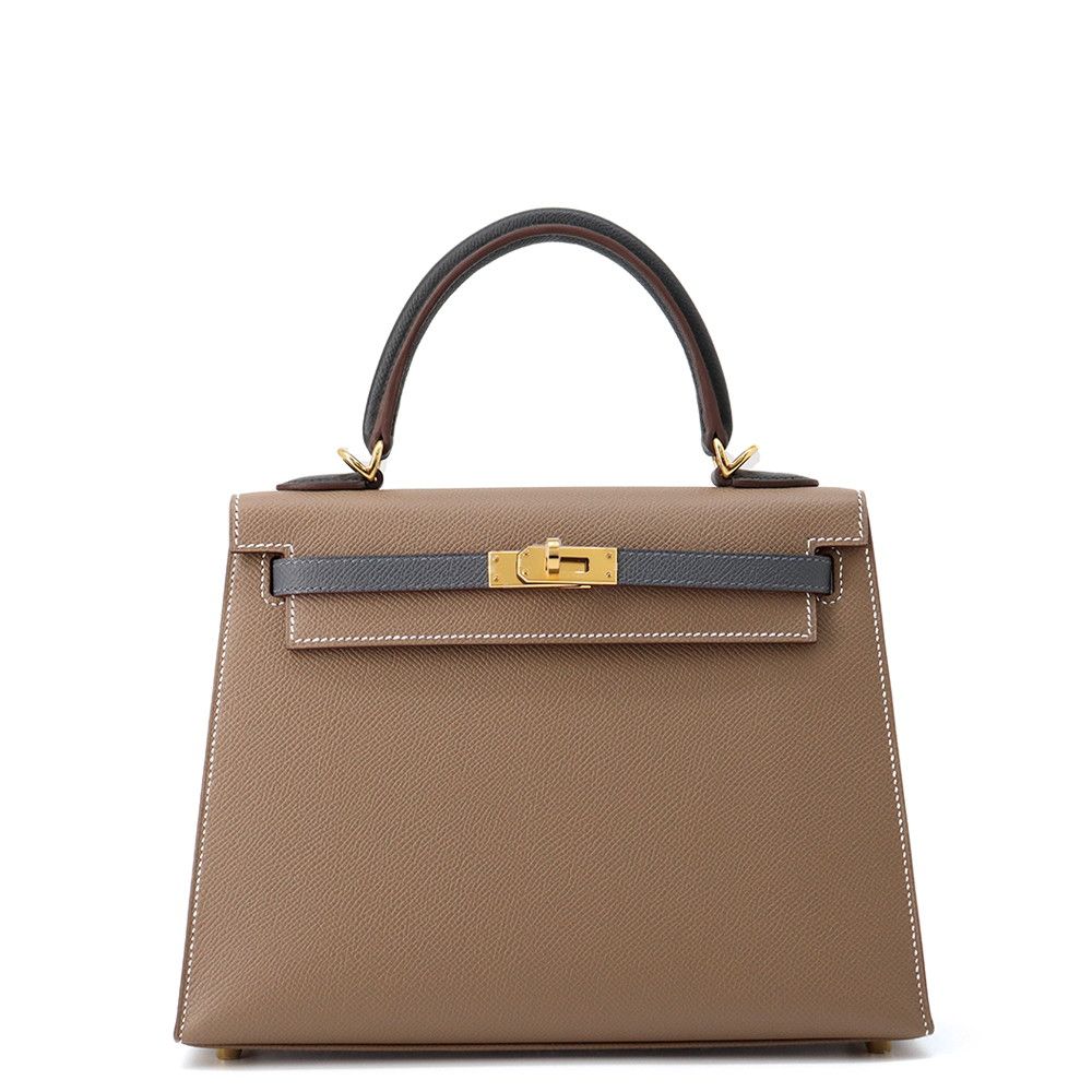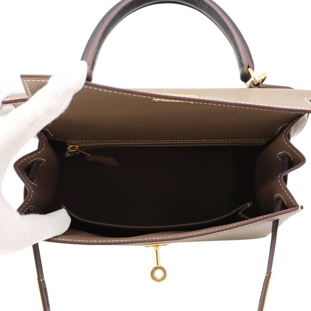 エルメス ハンドバッグ ケリー25 外縫い トリコロール エトゥープ/アルドワーズ/ブラック/ゴールド金具 エプソン K刻印 2way