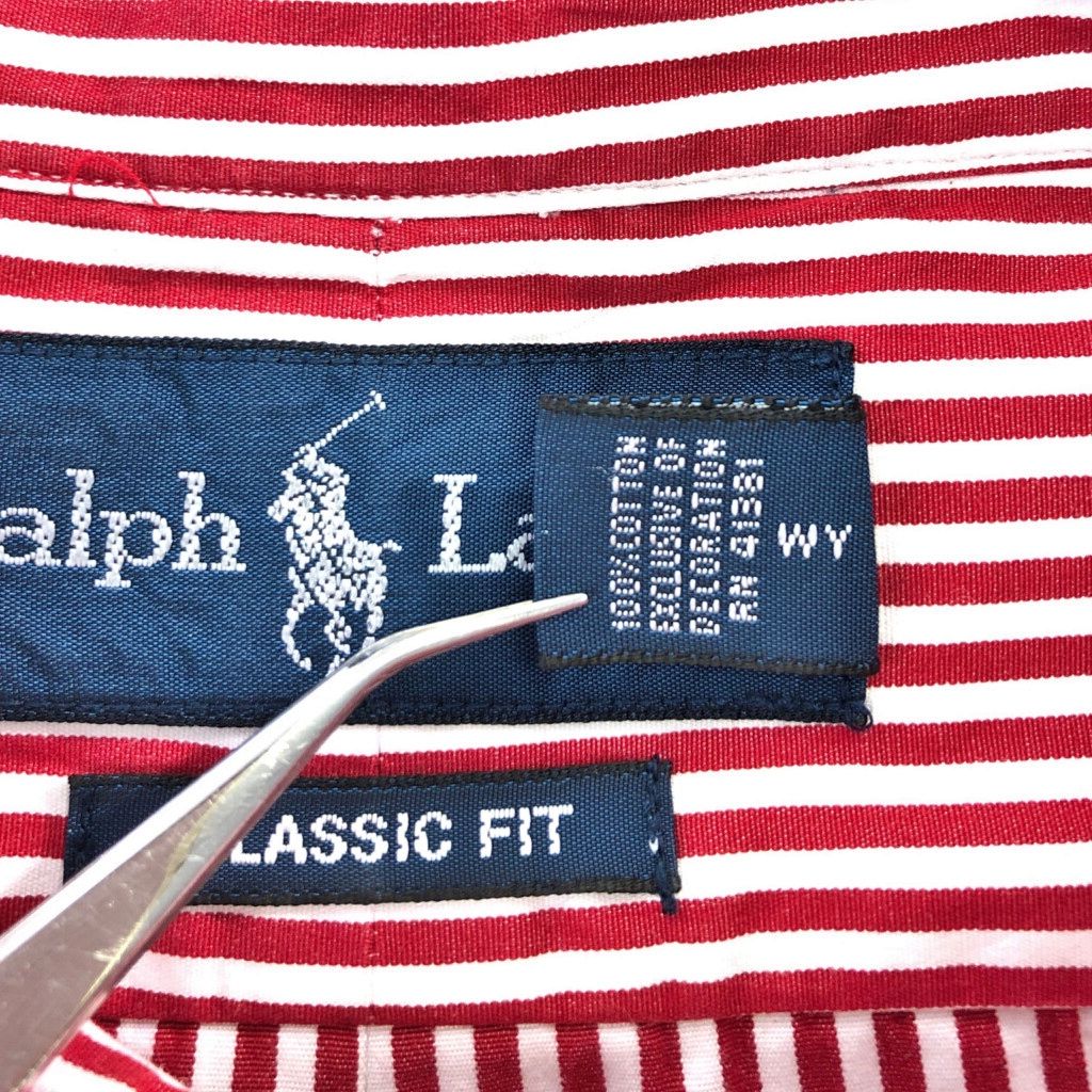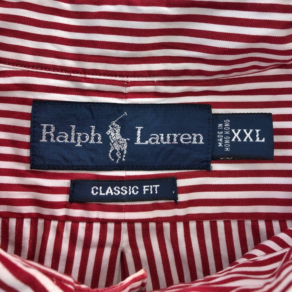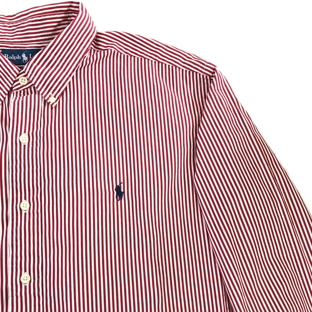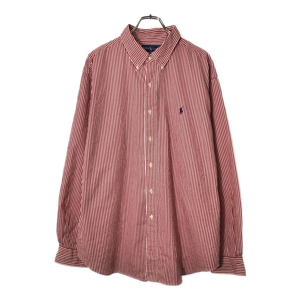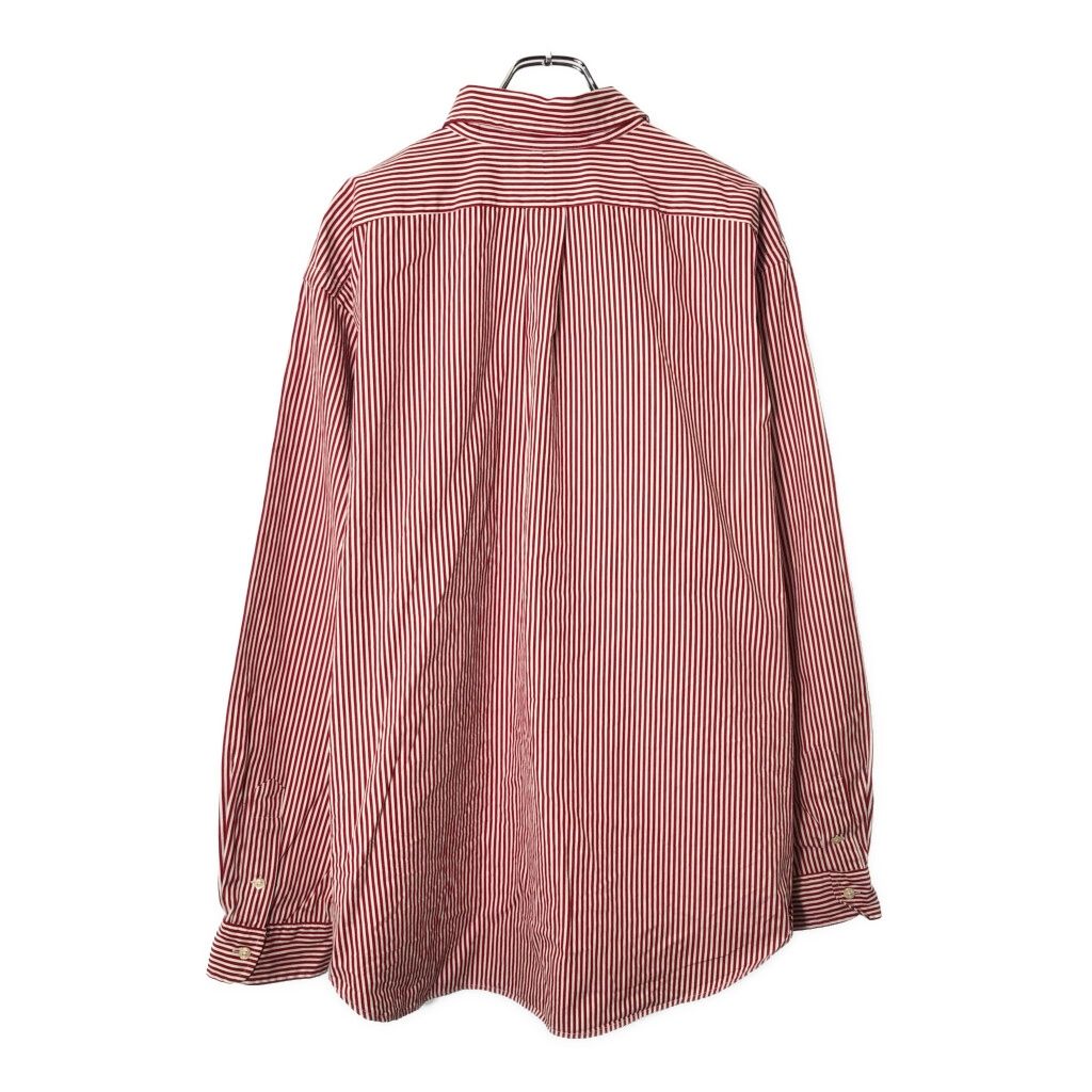 90年代 Polo by Ralph Lauren ポロ ラルフローレン ボタンダウン 長袖シャツ ストライプ レッド(メンズ XXL)中古 古着 V8671