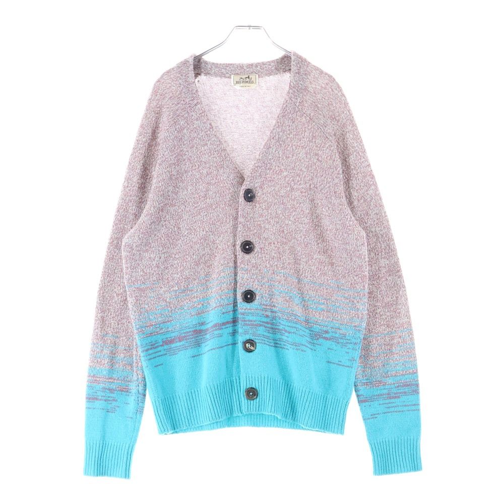 【品名】グラデーション ジャガード カシミヤニット 長袖カーディガン パープル/ライトブルー