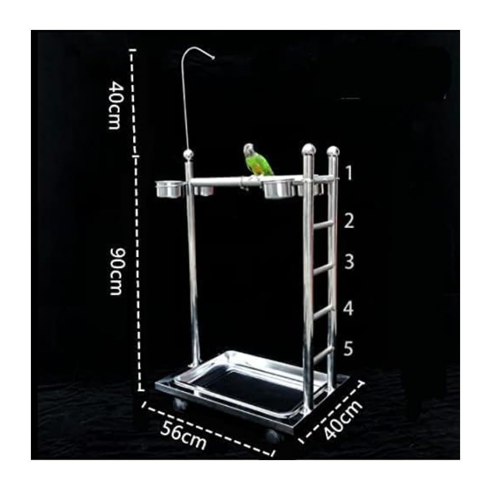 オウムスタンド バードラック 鳥プレイスタンド バードケージ ステンレススチール キャスター付き 噛まれ対策 遊び場 止まり木 56x40x130CM (止まり木直径3.2CM)