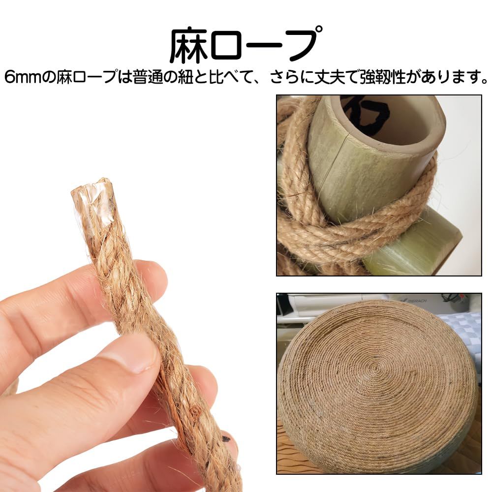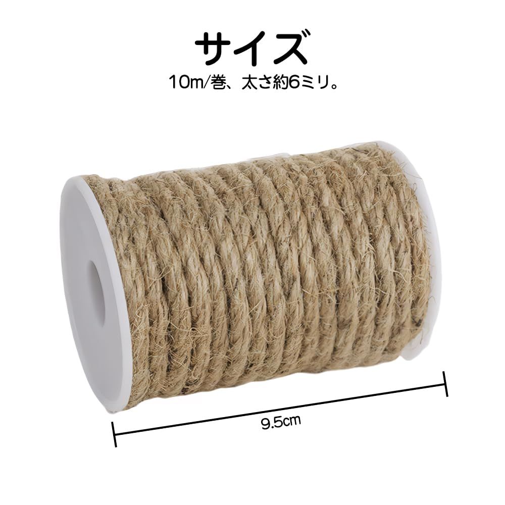 麻縄 6mm 10M 太い 麻ロープ 麻紐 麻ひも ナチュラル 原色 天然繊維 園芸 梱包 手作り 猫爪とぎ修理などに 飾り付け DIY用 作業用
