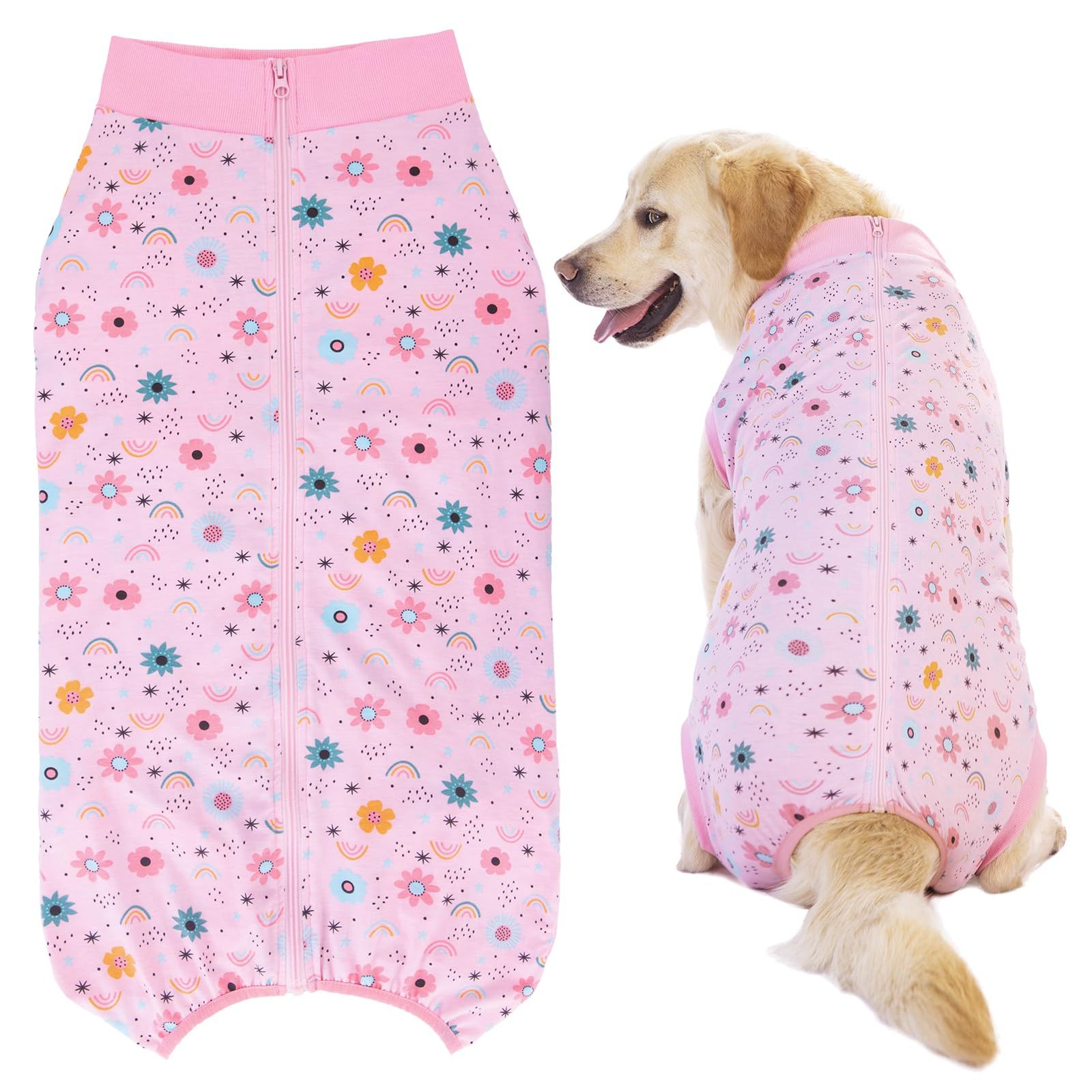 PET 大型犬 中型犬 術後服 メス オス 犬 手術後 服 犬用術後ウェア 介護服 ペット服 エリザベスカラー 避妊 離乳 傷口保護((花柄)ピンク 4L)