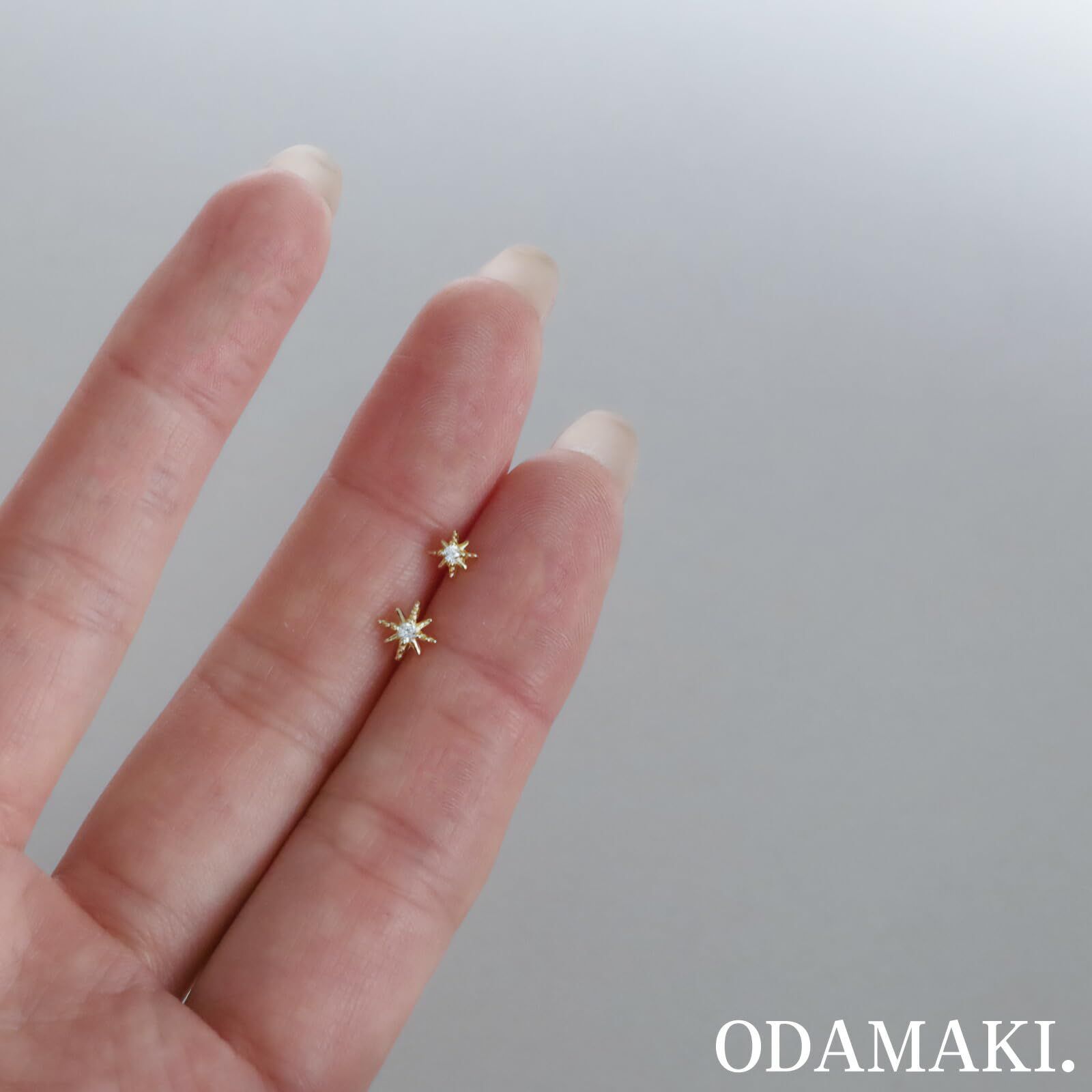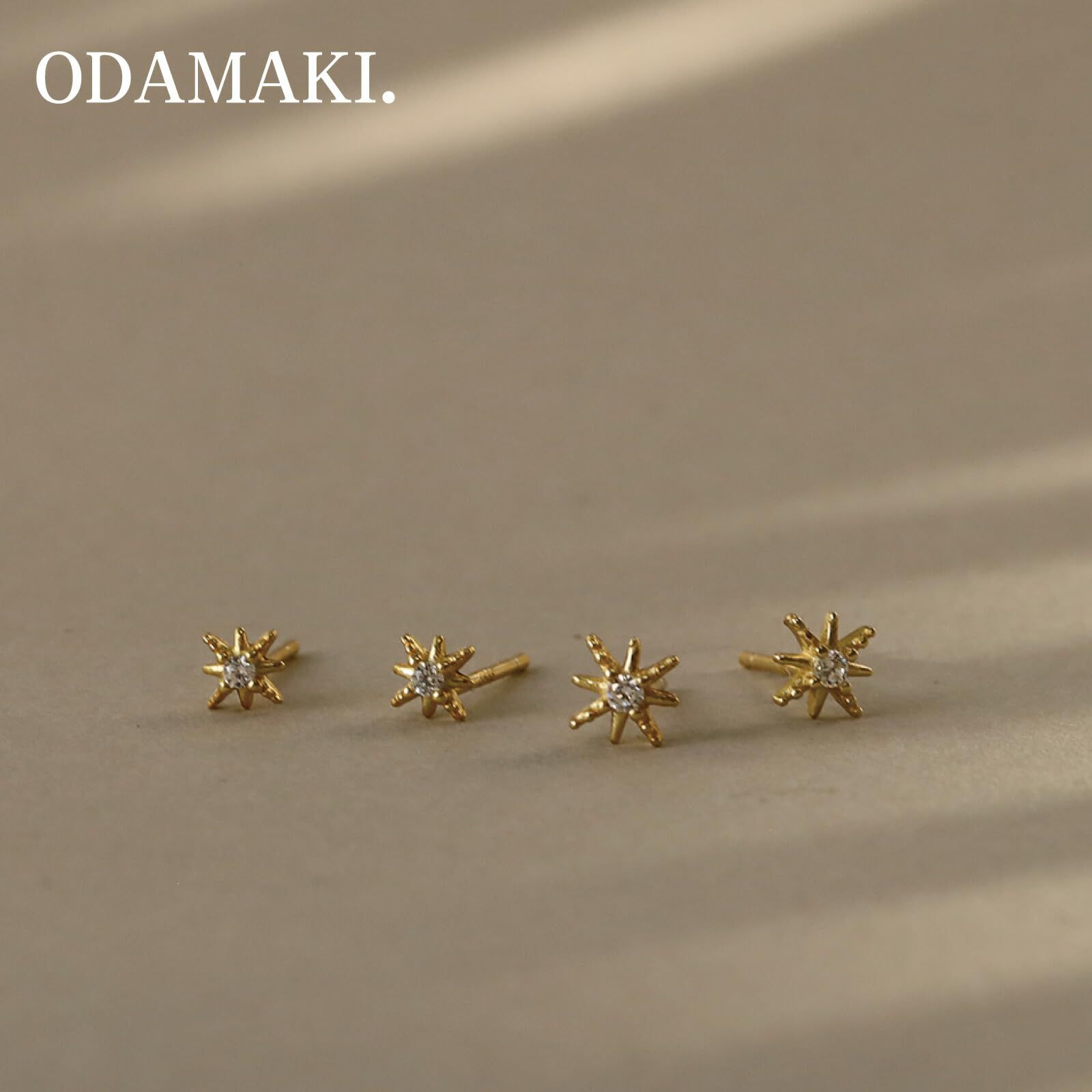 ???【太陽モチーフのシンプルピアス】 太陽は「生命力・成功・魔除け」の象徴。小ぶりで可愛いモチーフピアスが、ハワイアンジュエリーでも有名な太陽の雫をモチーフとし、小ぶりで可愛いデザインに仕上げました。中央の一粒ジルコニアが顔回りを明るく引き立てます。