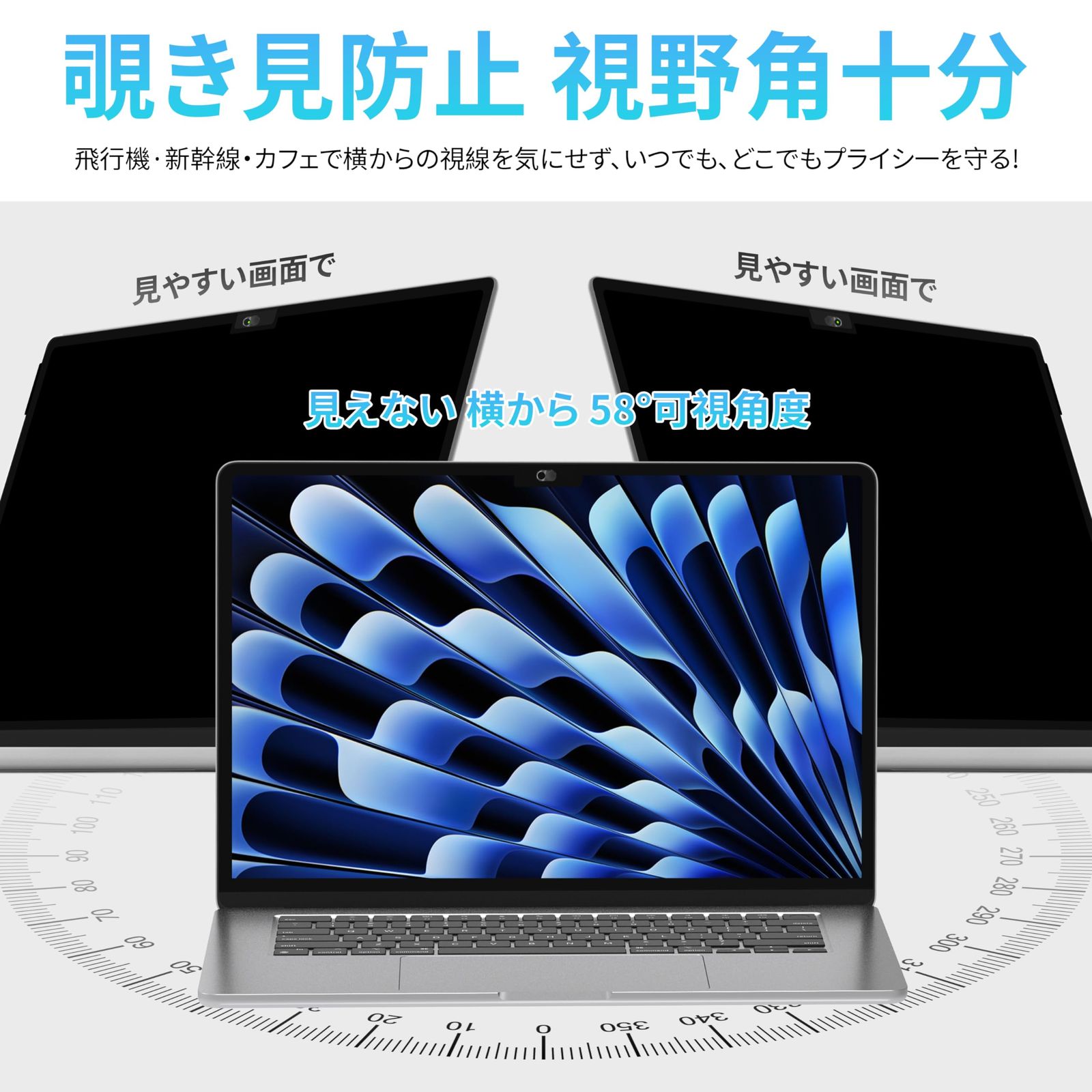 【プライバシー保護対策】60度の視野角、画面の正面から見れると画面はクリアでも、60°以外の角度からは画面が真っ黒に見える偏光性を有する Macbook pro 14 覗き見防止フィルターです。オフィス・カフェ・飛行機・新幹線などにおいて、横からの覗き見を防止でき、安心にMacbook pro 14 を利用いただけます。