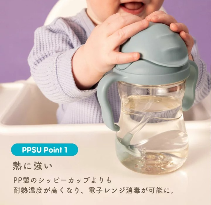 本体は握りやすいハンドル付きで,哺乳瓶からのステップアップや,離乳食と同時期のストローデビューにも最適