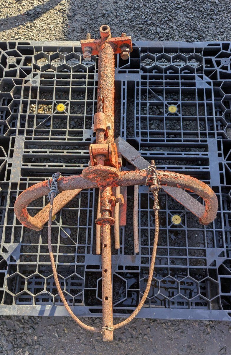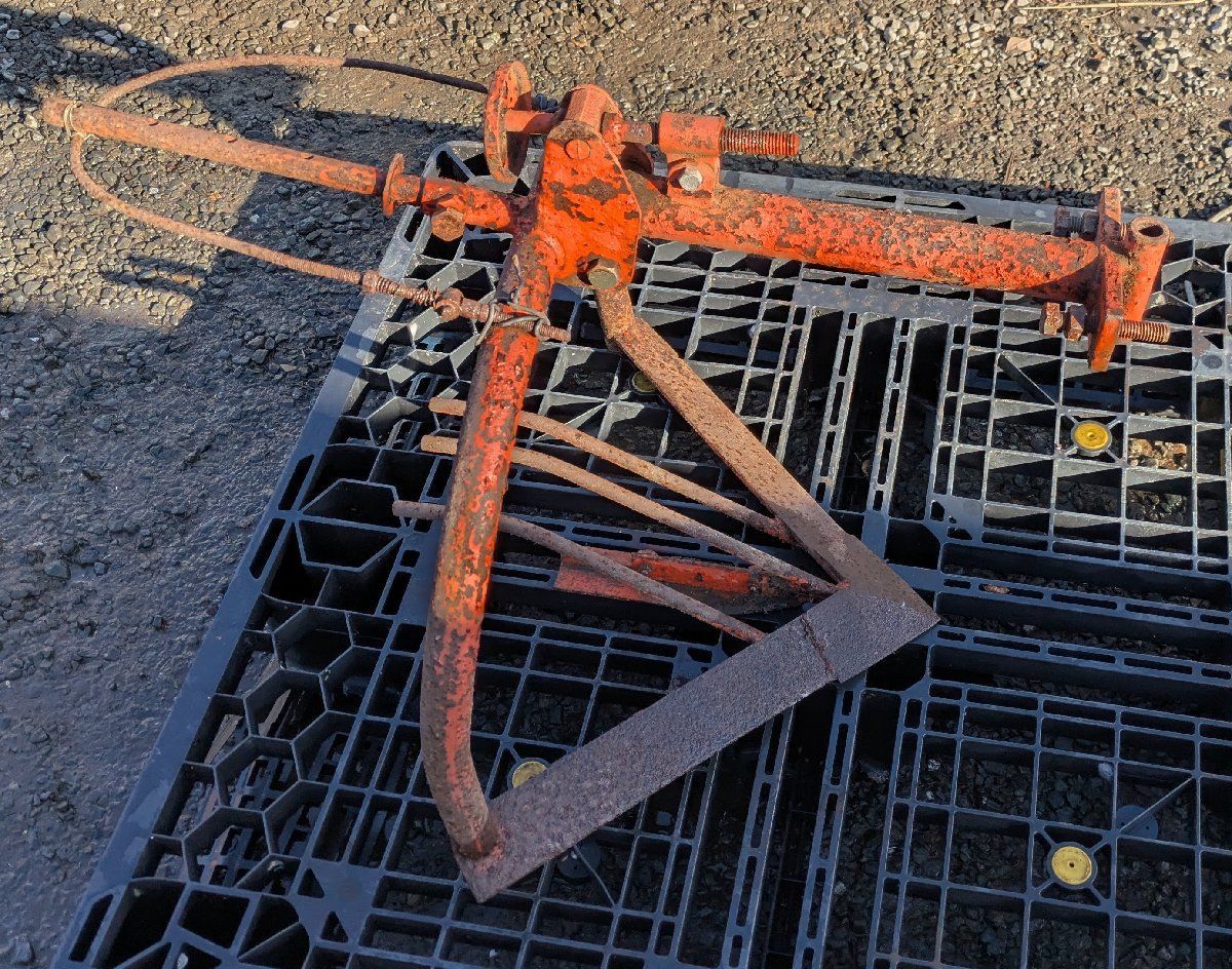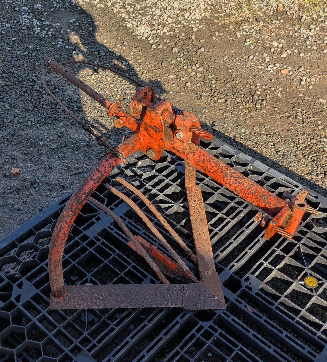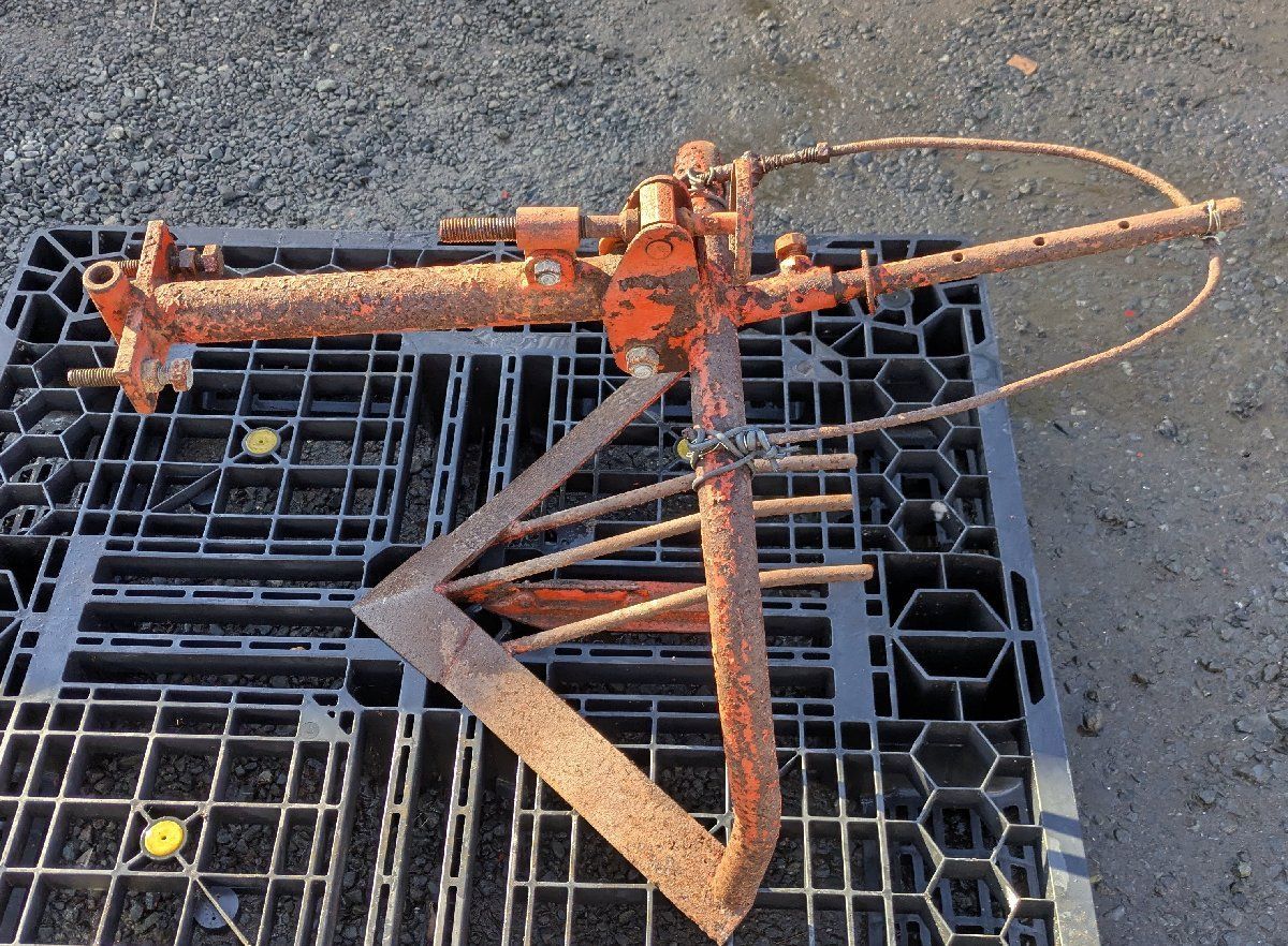 ●耕うん機用 芋堀機 です 。写真のように前の方が補強して使っていた部品はそのままにしてますので活かせる方はお使いください。