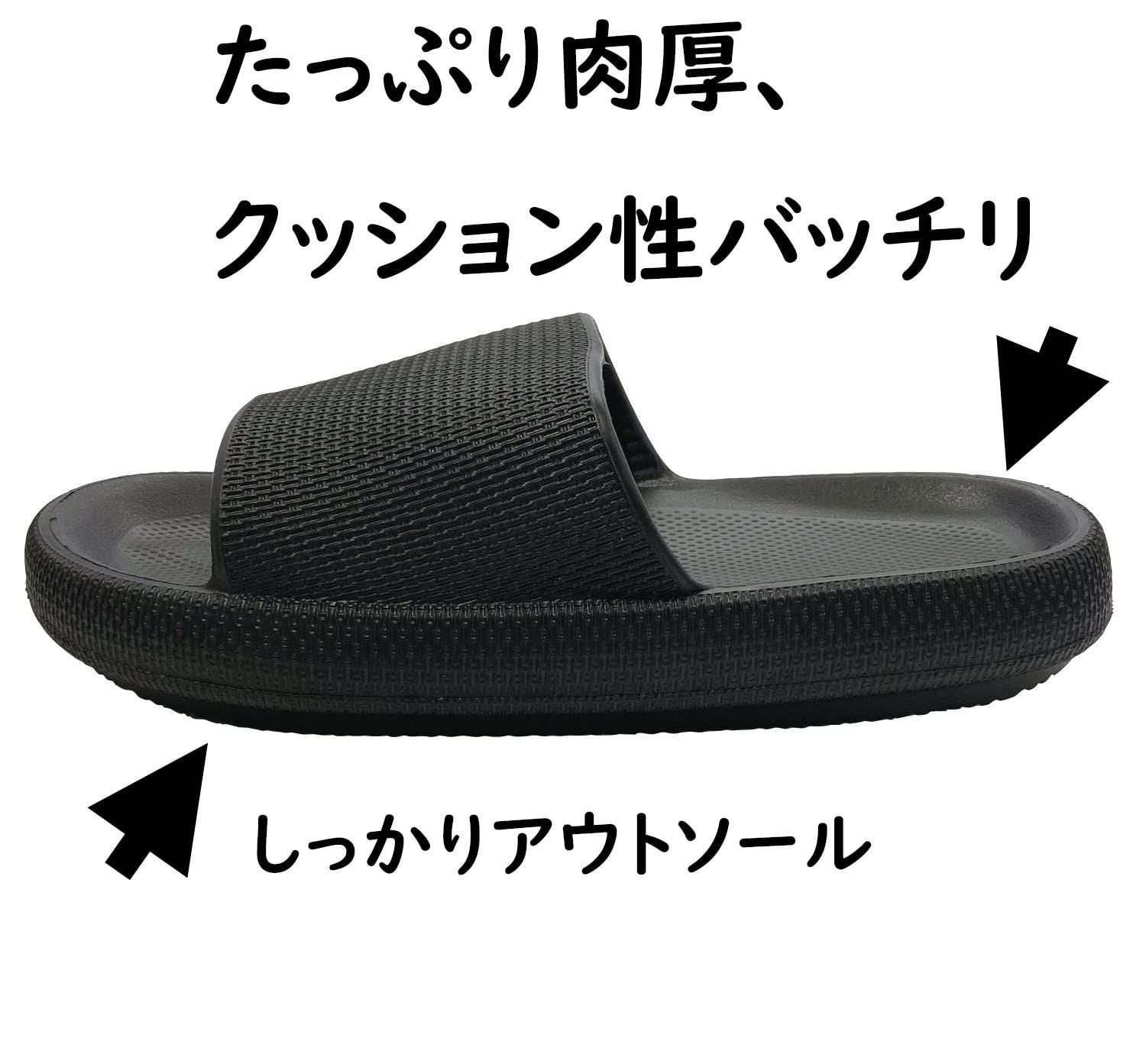 サンダル メンズ 外履き 春夏 ましゅまろ モチっと EVA 低反発 弾力 フィット 超軽量 スリッパ ルームシューズ 室内履き ブラック Mサイズ:約25~26cm 86845