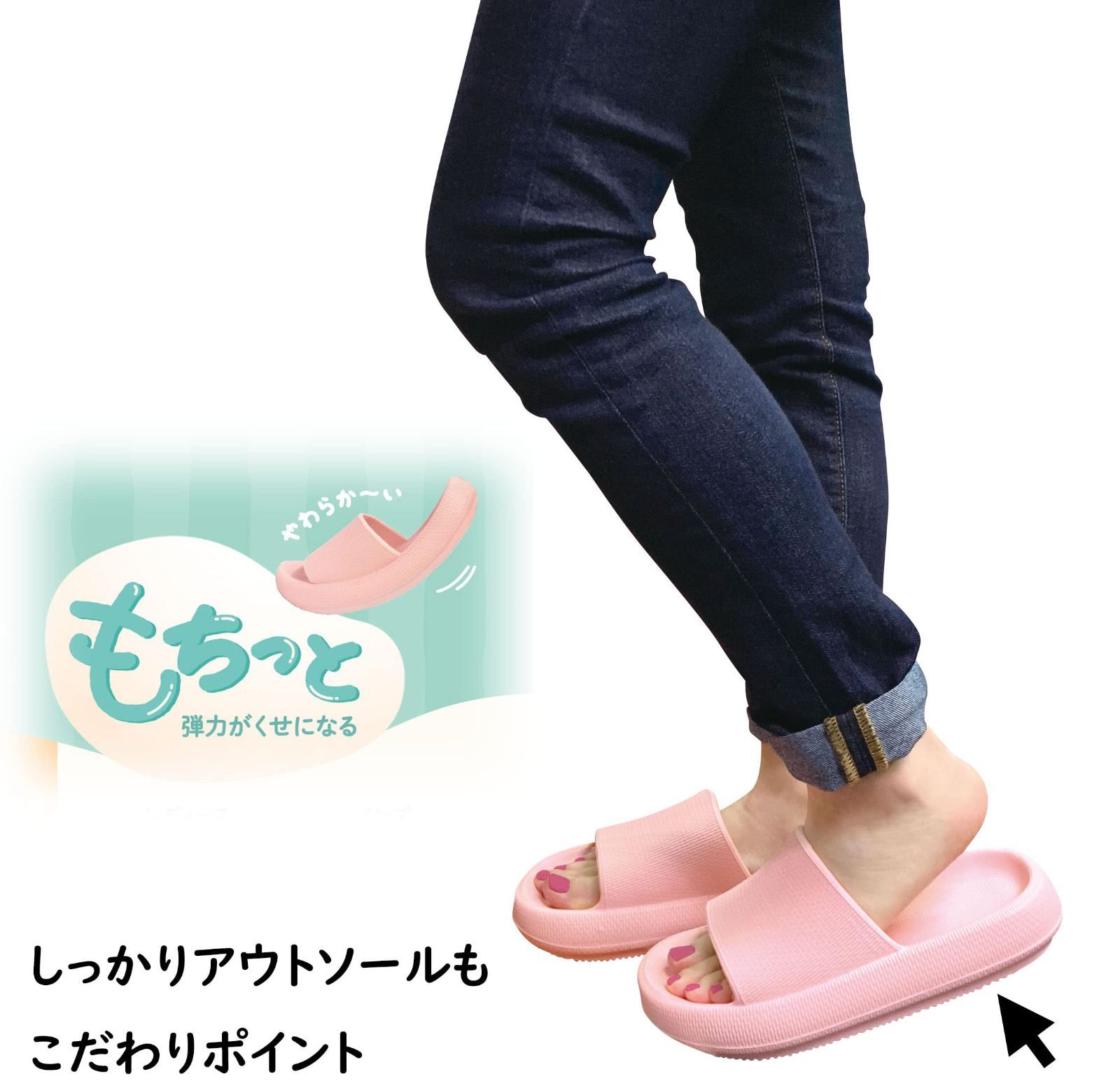 もちっと触感ですが、ソールは厚めで歩いた時のクッション性がかなりいいです。外履き サンダル に ベーシックなデザインなので 日常使い 快適です。 もちろん 室内履きとしてもおすすめ。