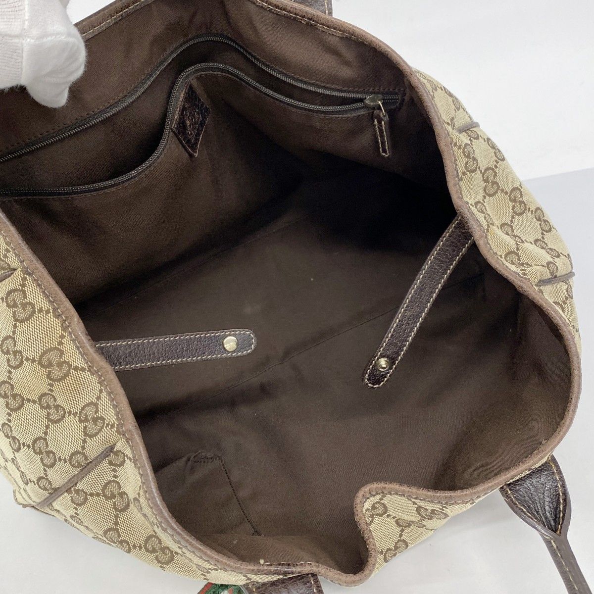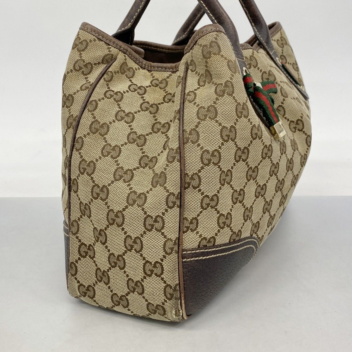 【5pc3666】グッチ トートバッグ GGキャンバス/シェリーライン 163805 キャンバス ブラウン シャンパンゴールド金具【中古】レディース