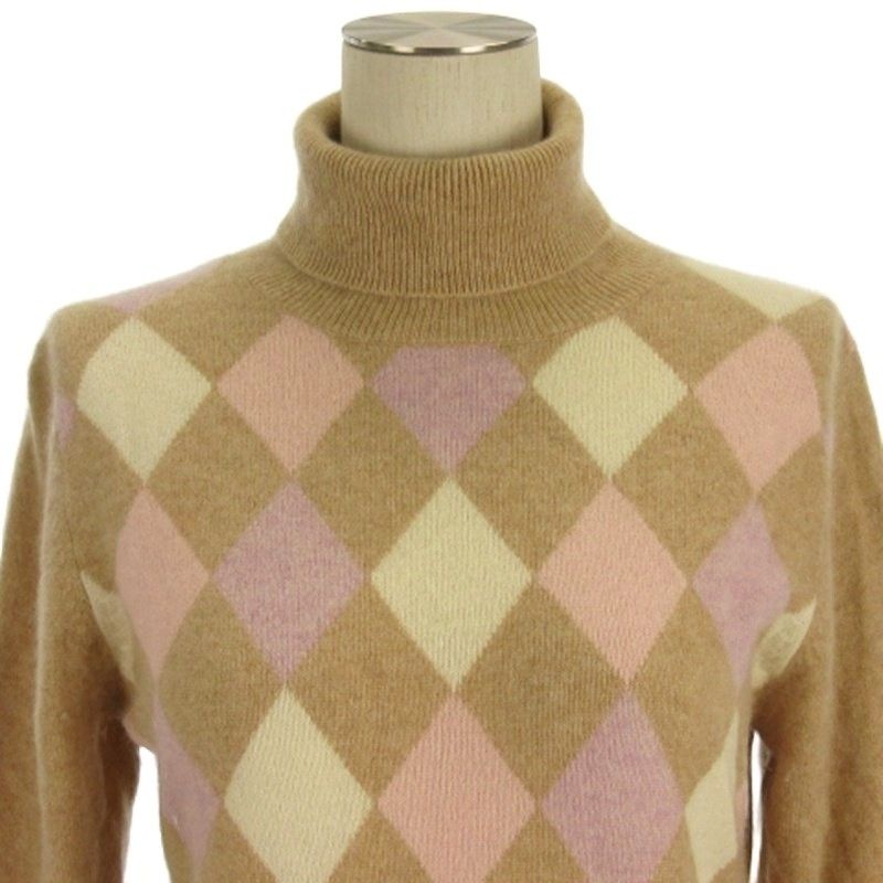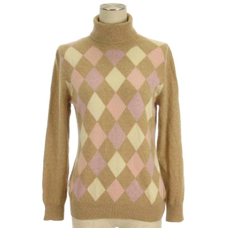【商品名】フィアンヌ FIANNUE アーガイル柄 カシミヤ100% タートルネック ニット セーター ベージュ M ■FF