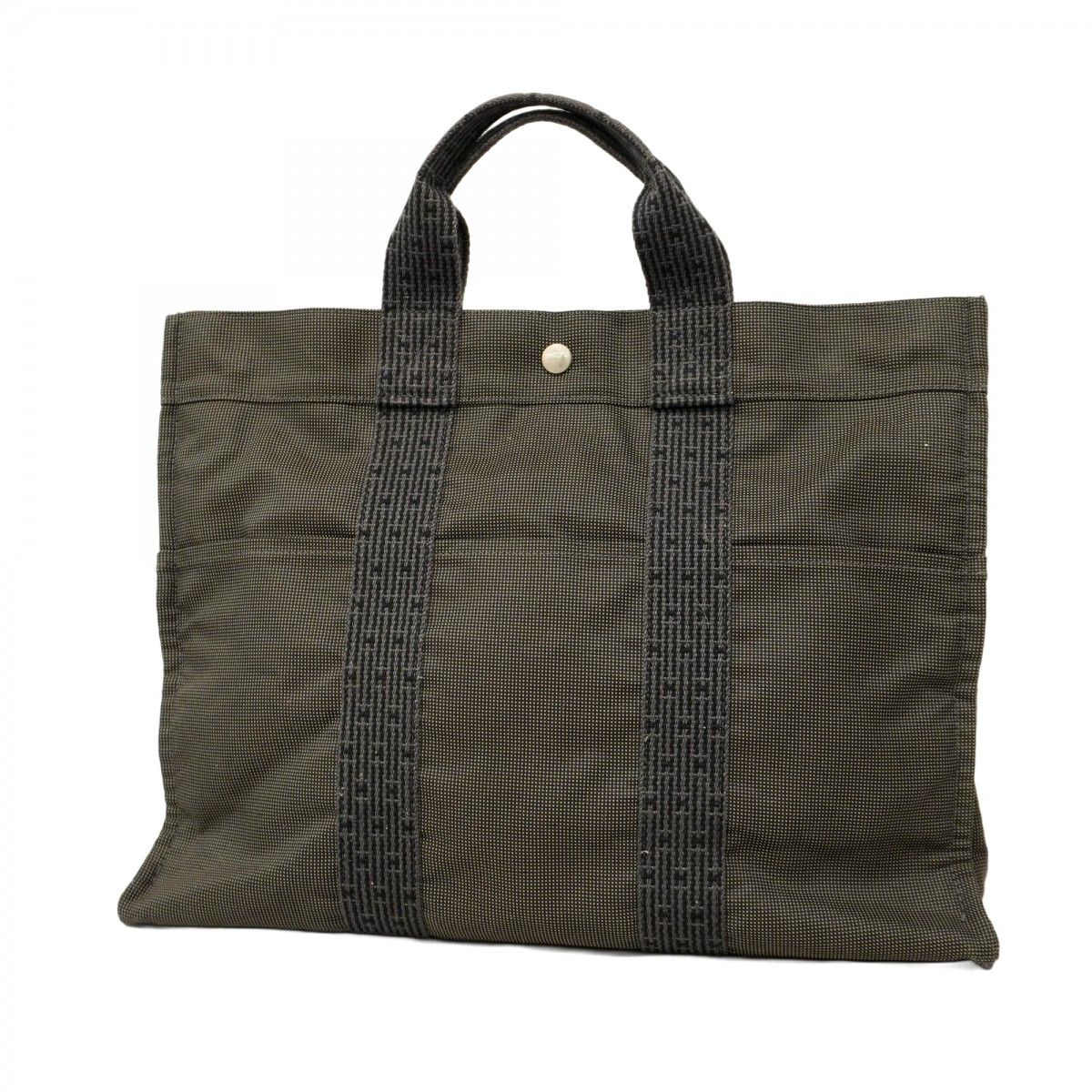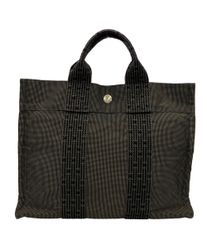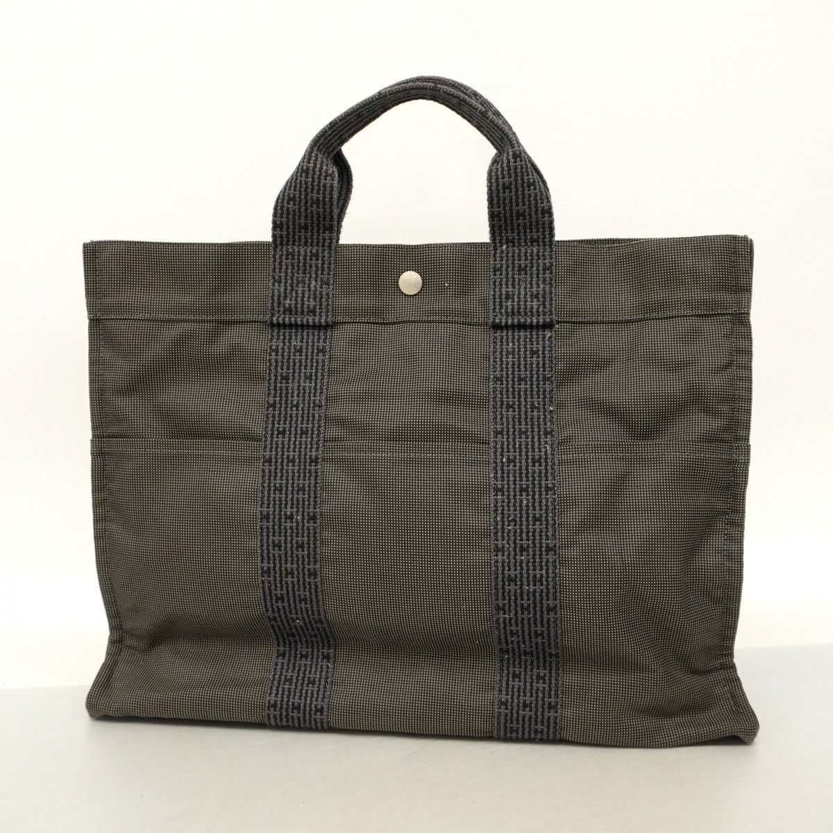 【5pc3833】エルメス トートバッグ エールラインMM キャンバス グレー シルバー金具【中古】レディース