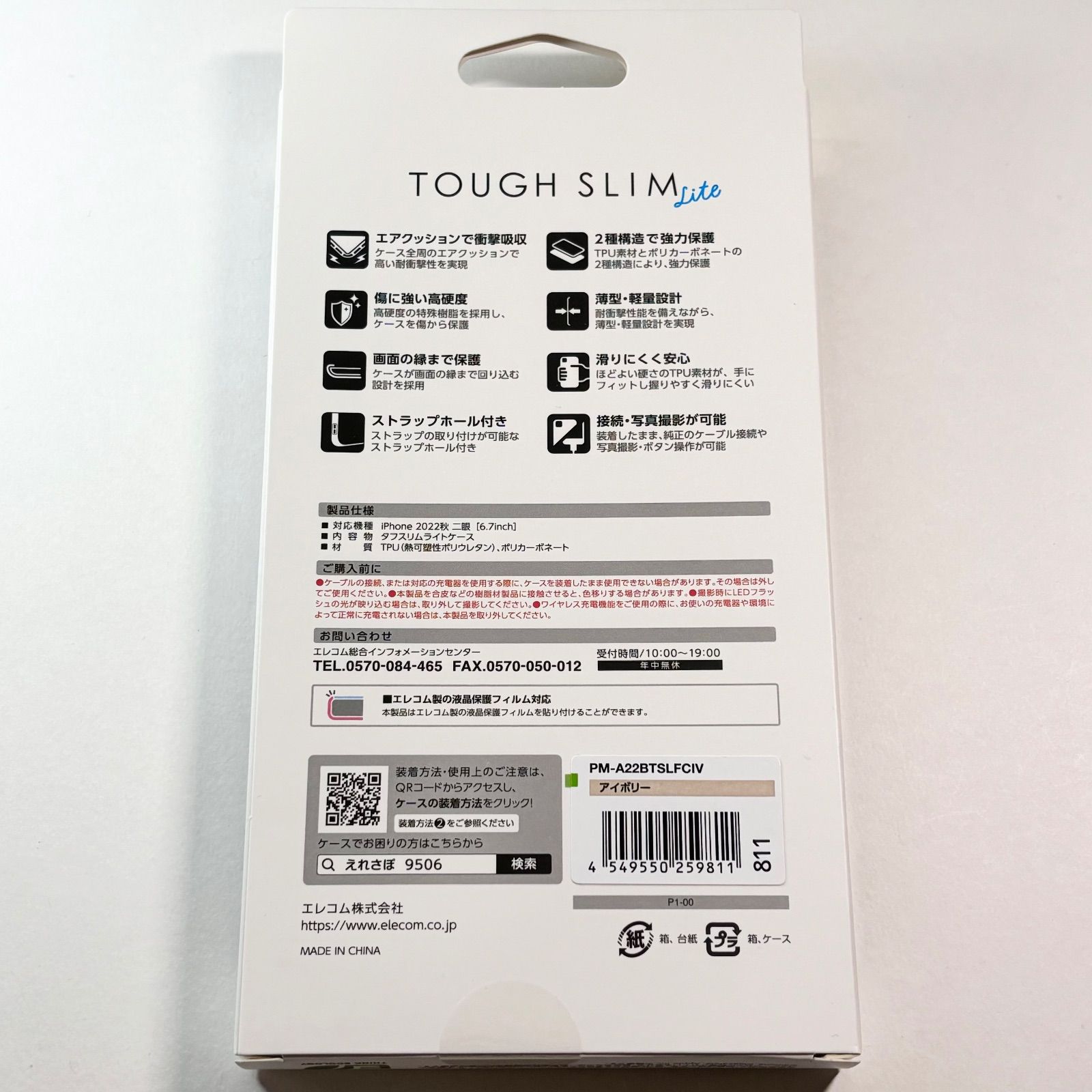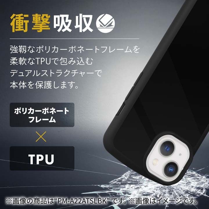 側面に弾力性のあるTPU素材を、背面に高硬度のポリカーボネート素材を使用した、iPhone 14 Plus用TOUGH SLIM LITEケースです。