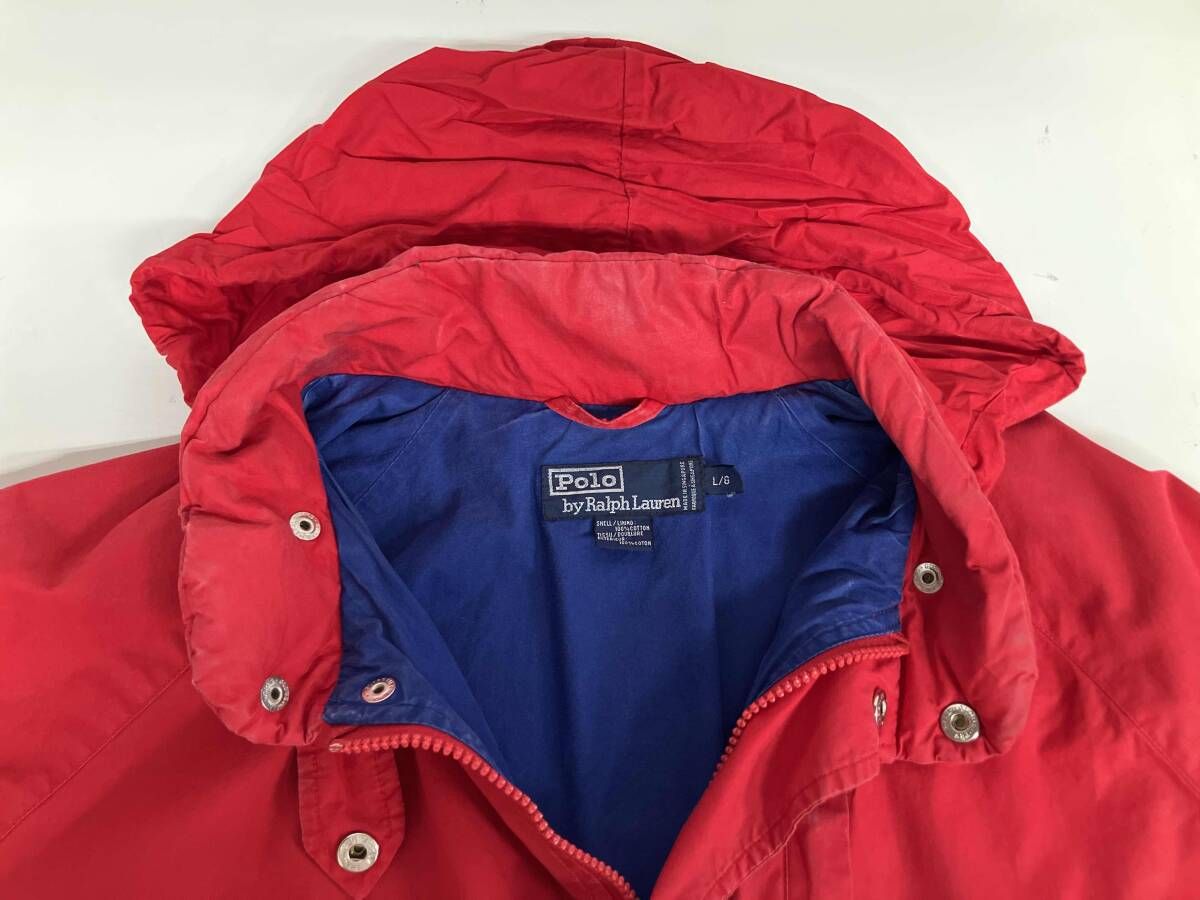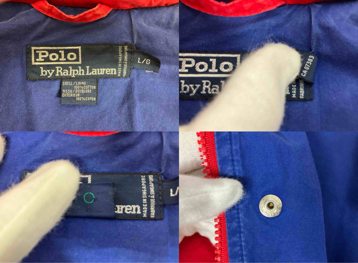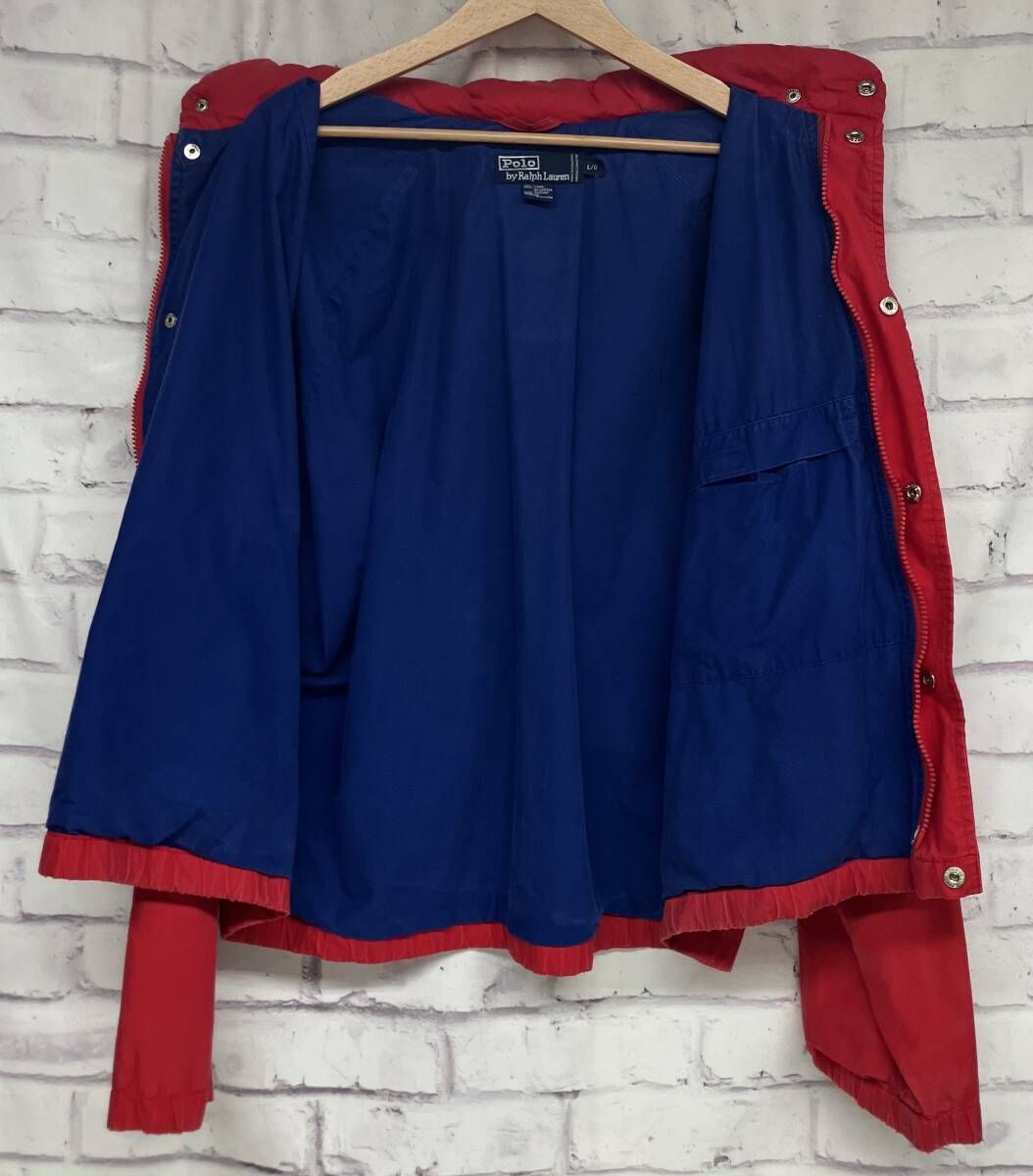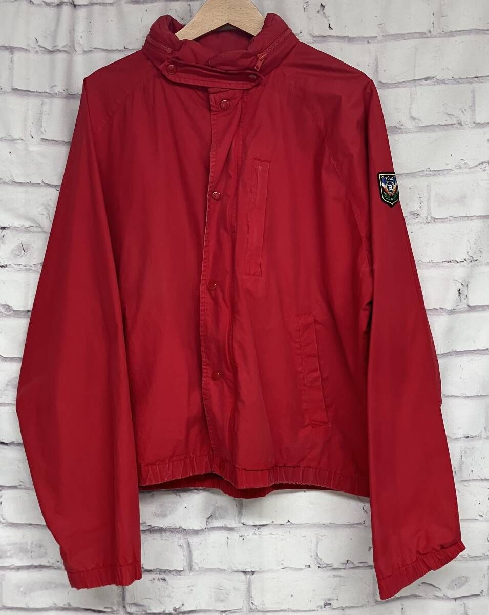 POLO RALPH LAUREN ポロラルフローレン セーリングジャケット 赤 ロゴワッペン シンガポール製 コットン L フード アメカジ メンズ