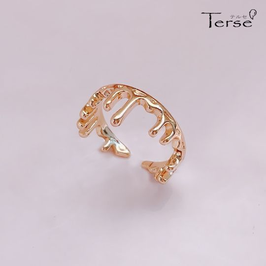 Terse流れるようなはとろーりはちみつ形を、メタルで表現した指輪 インパクトがありながらも上品でモードな印象に まるで液体金属のようなメタルアームが今っぽいフォークリング 見せる部分によってリングの印象が変わるユニークなデザインフォークリングrs0312ag