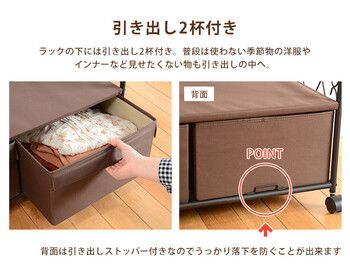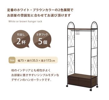 アイアンの曲線がエレガント、衣類や帽子・小物類も美しく収納できるハンガーラック。