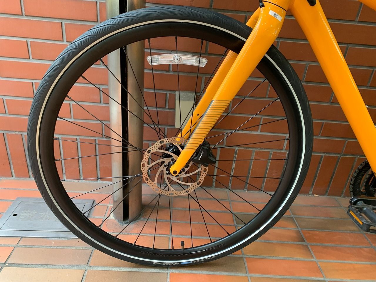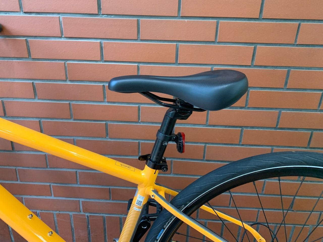 アルミフレームとカーボンフォークを採用し、快適な乗り心地と軽量性を実現。通勤・通学から週末のサイクリングまで対応。ディスクブレーキを装備しており、街中でも安心してスムーズな走行が可能。スタイリッシュなデザインも魅力の一つ。