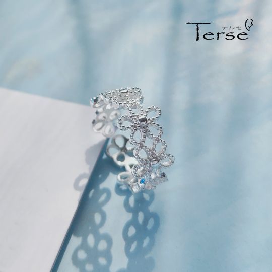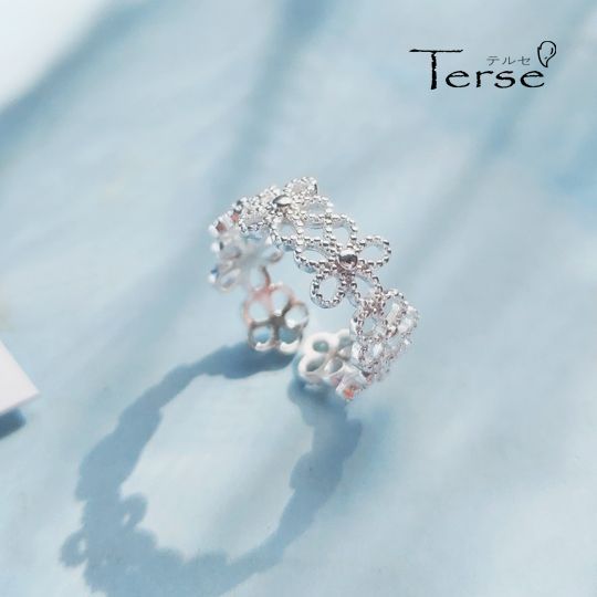 Terse 手編みのレースを指にまとったような繊細なデザイン 連なった透し彫りフラワーが女性らしいリング可愛らしく華やかに魅せてくれます サイズフリー ミル打ち 普段使い レディース 二次会 お呼ばれ お出かけ 一つで主役級の存在感 rs0195as