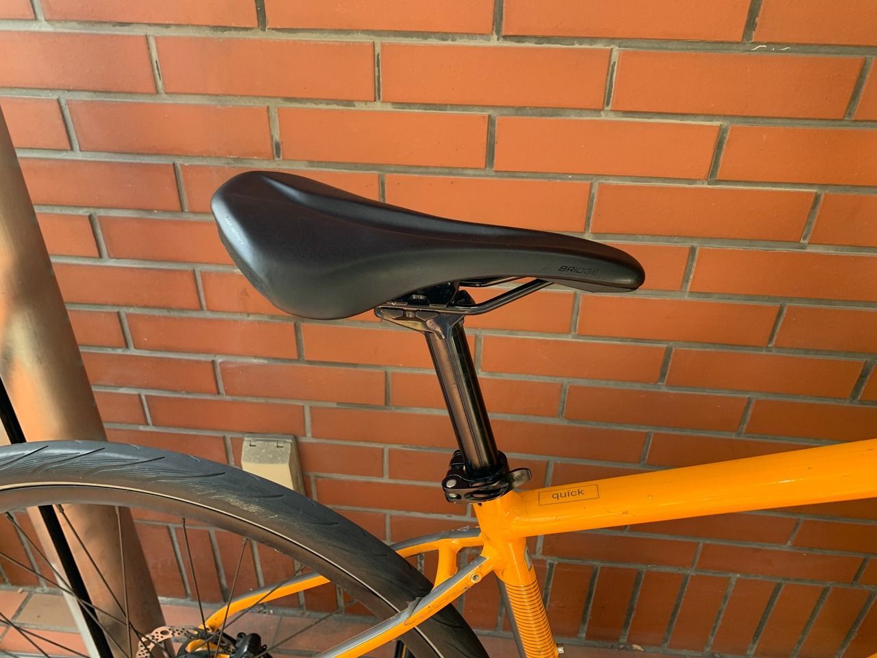 アルミフレームとカーボンフォークを採用し、快適な乗り心地と軽量性を実現。通勤・通学から週末のサイクリングまで対応。ディスクブレーキを装備しており、街中でも安心してスムーズな走行が可能。スタイリッシュなデザインも魅力の一つ。