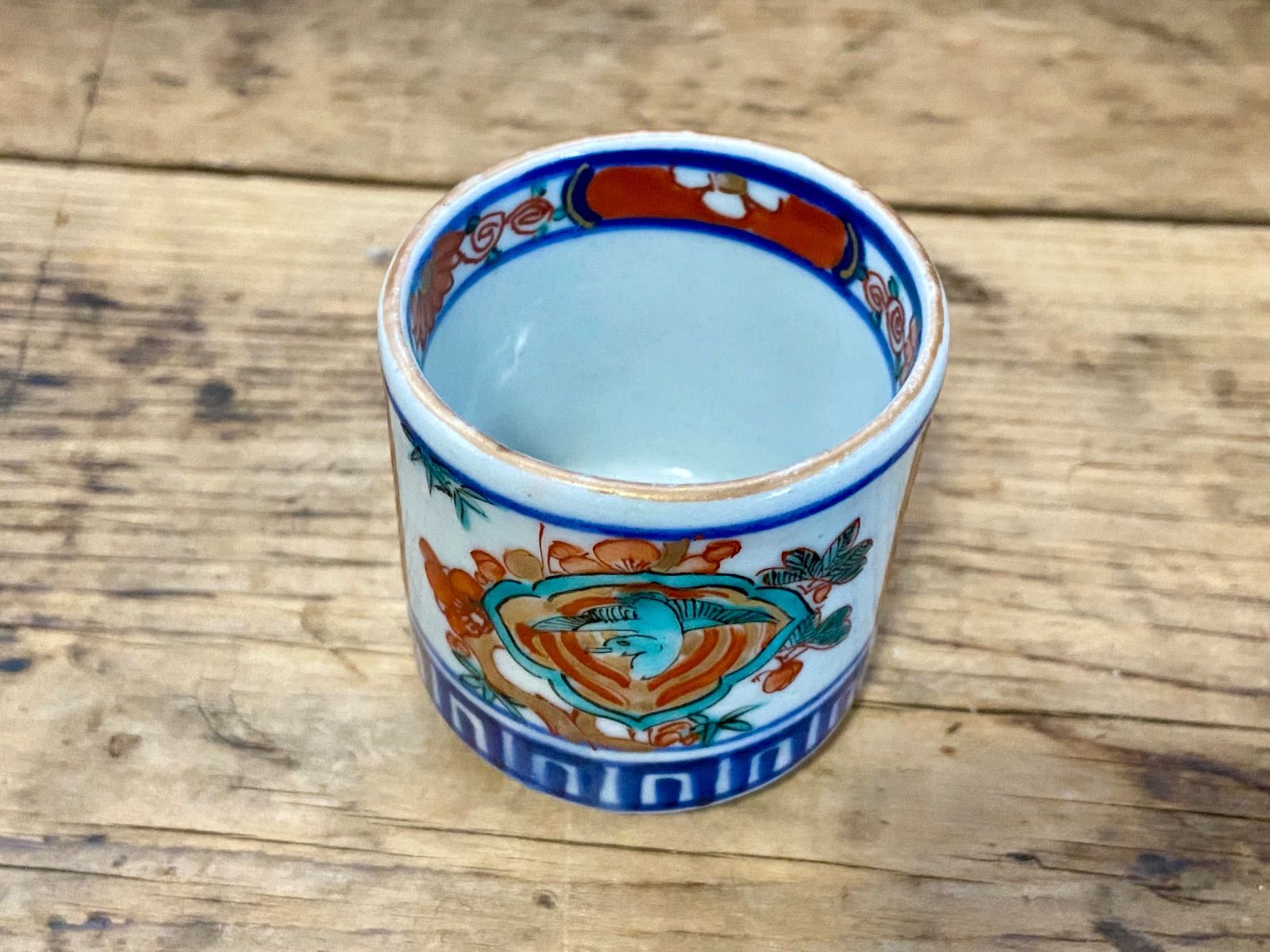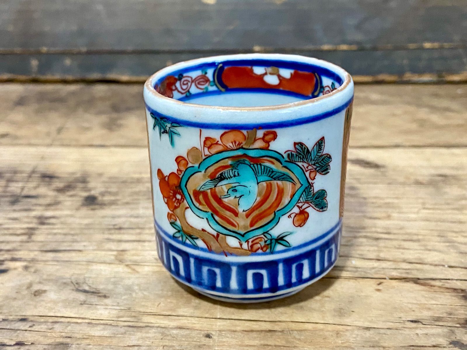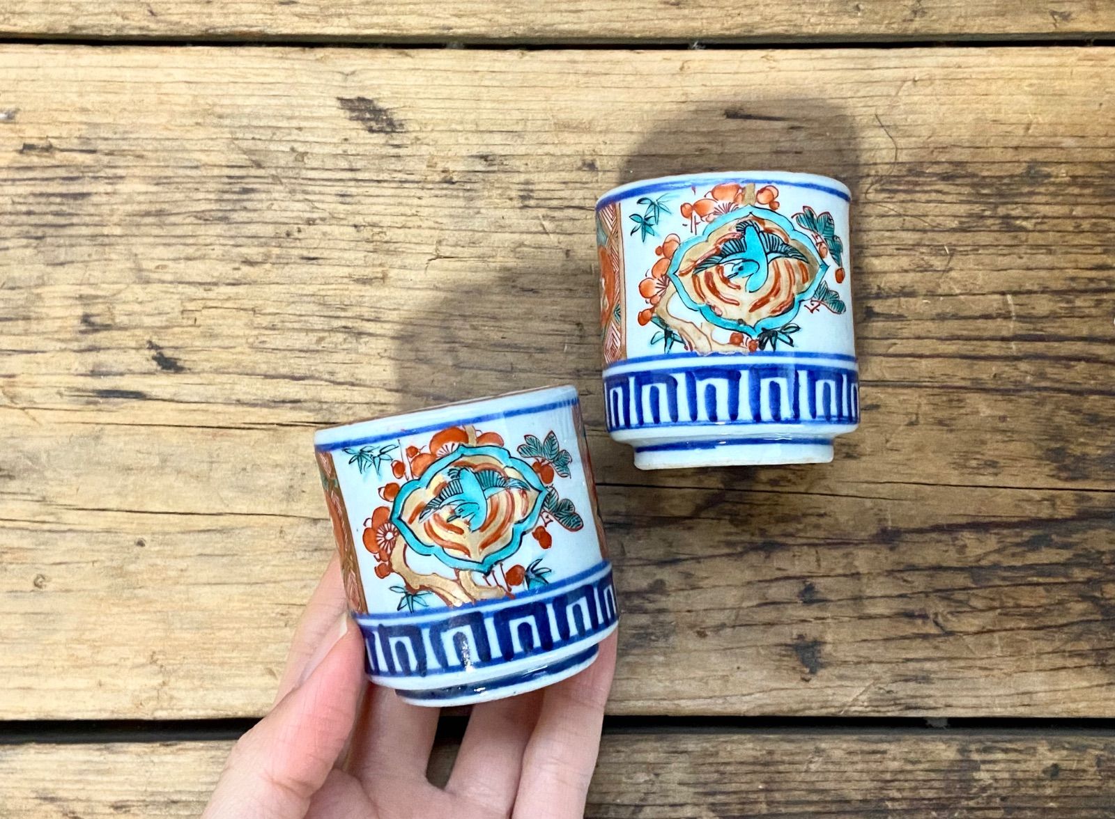 染錦で鳥や草花の模様が絵付けされ華やかな雰囲気で