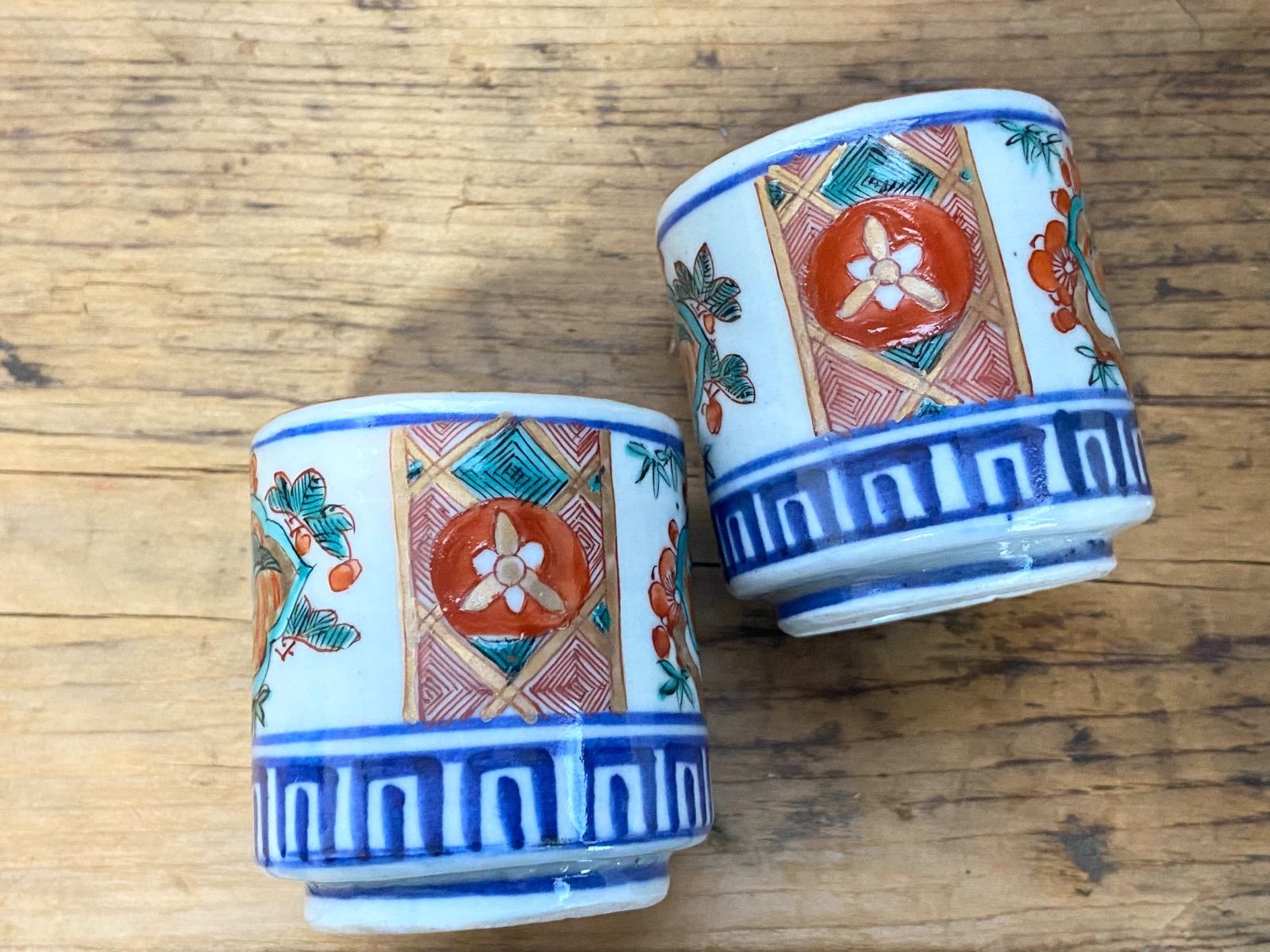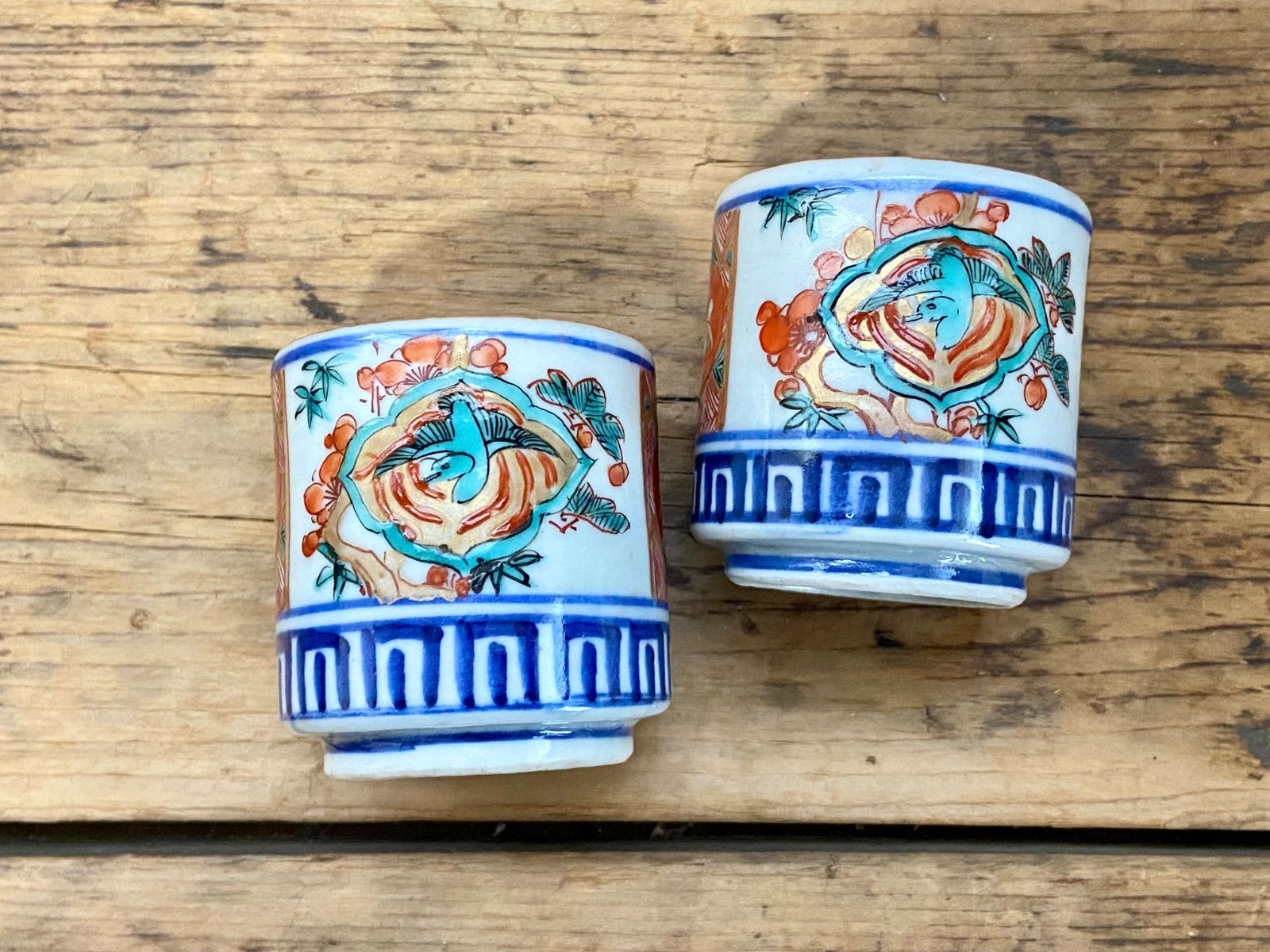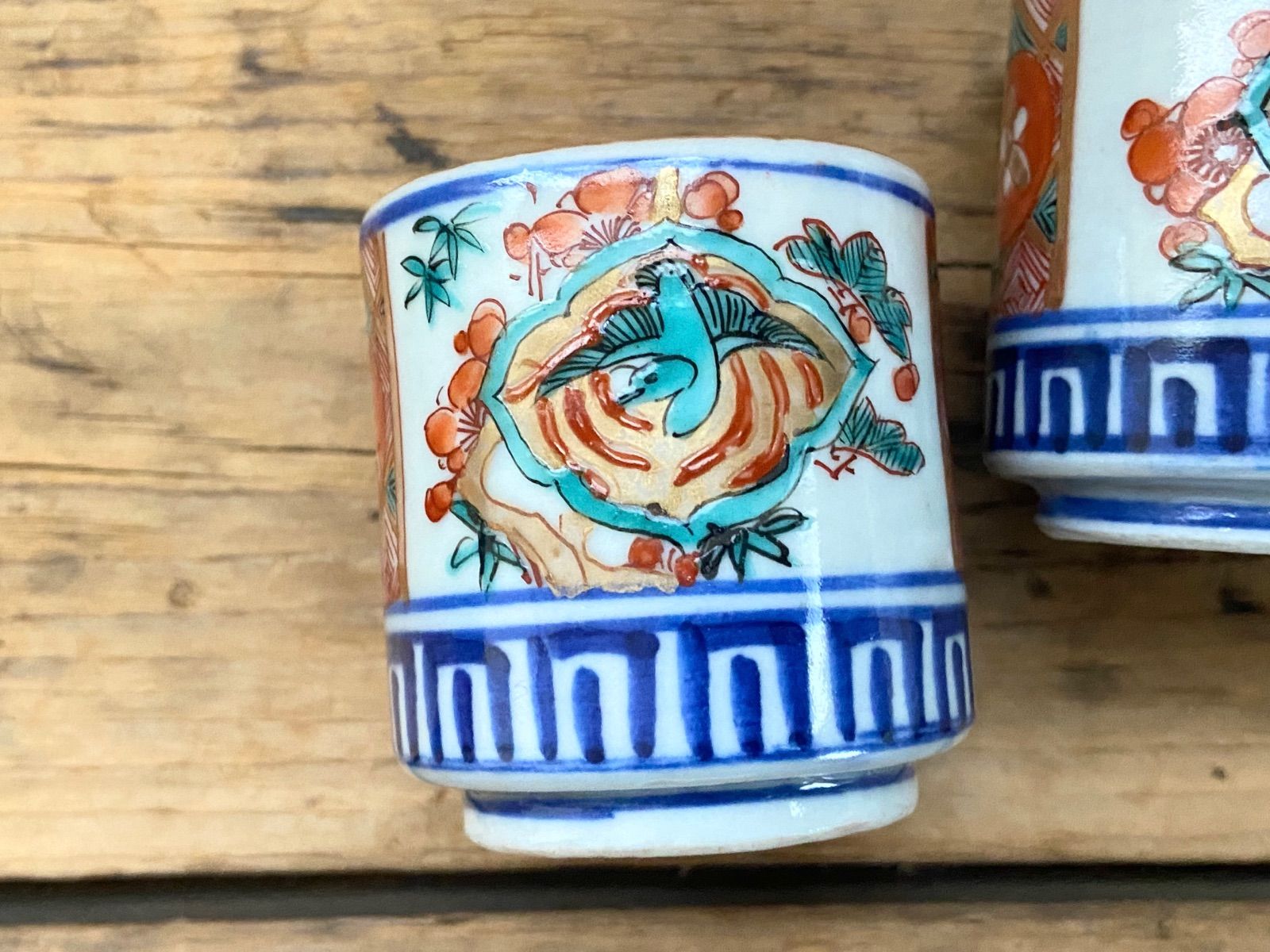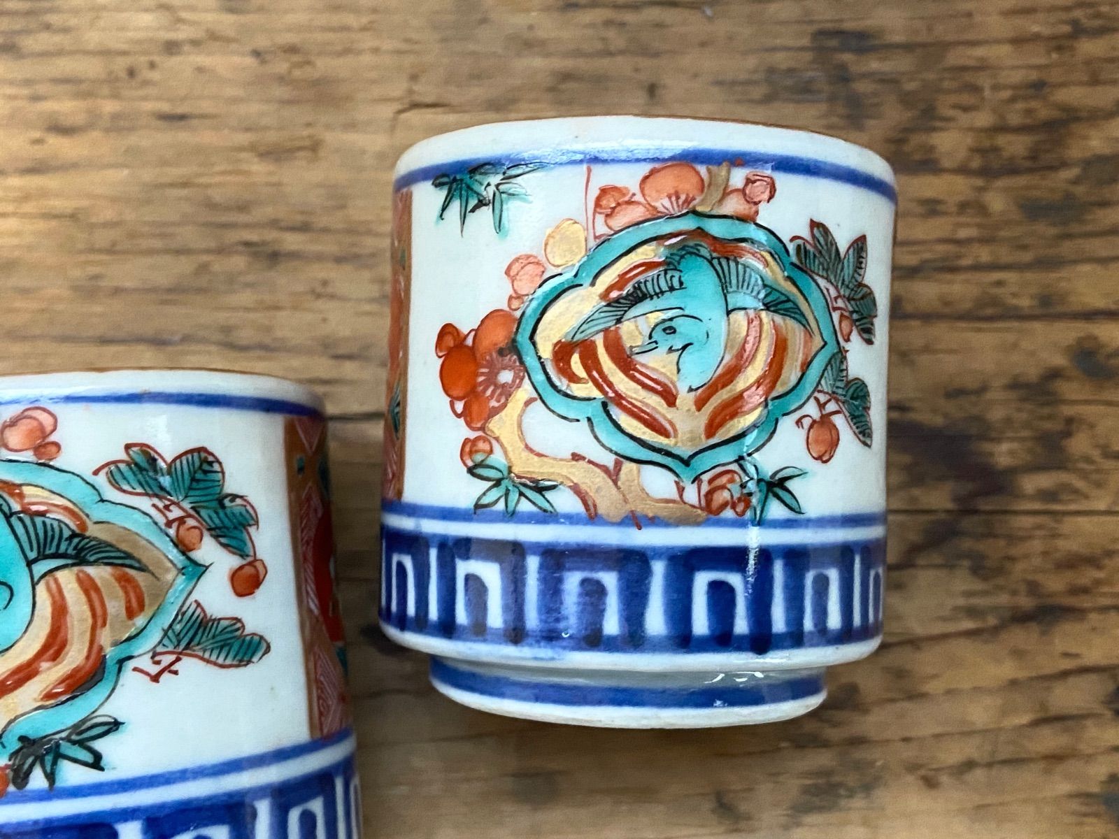 染錦で鳥や草花の模様が絵付けされ華やかな雰囲気で