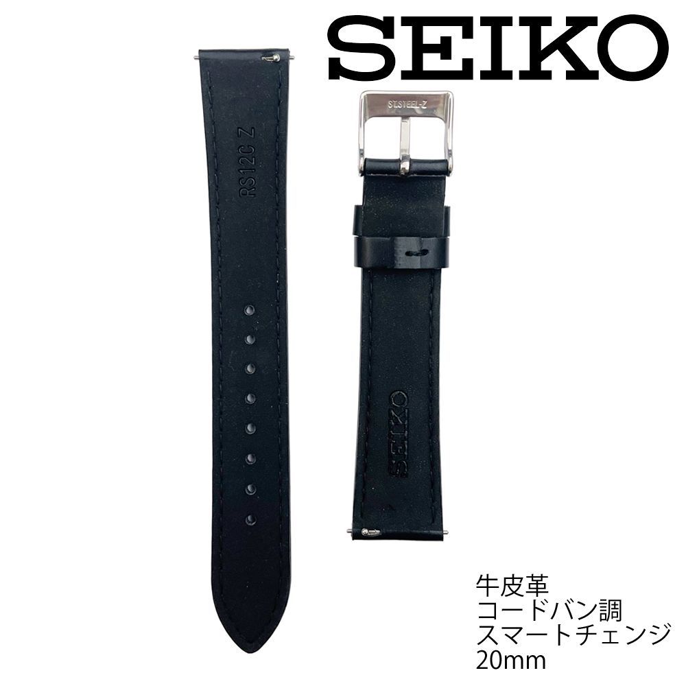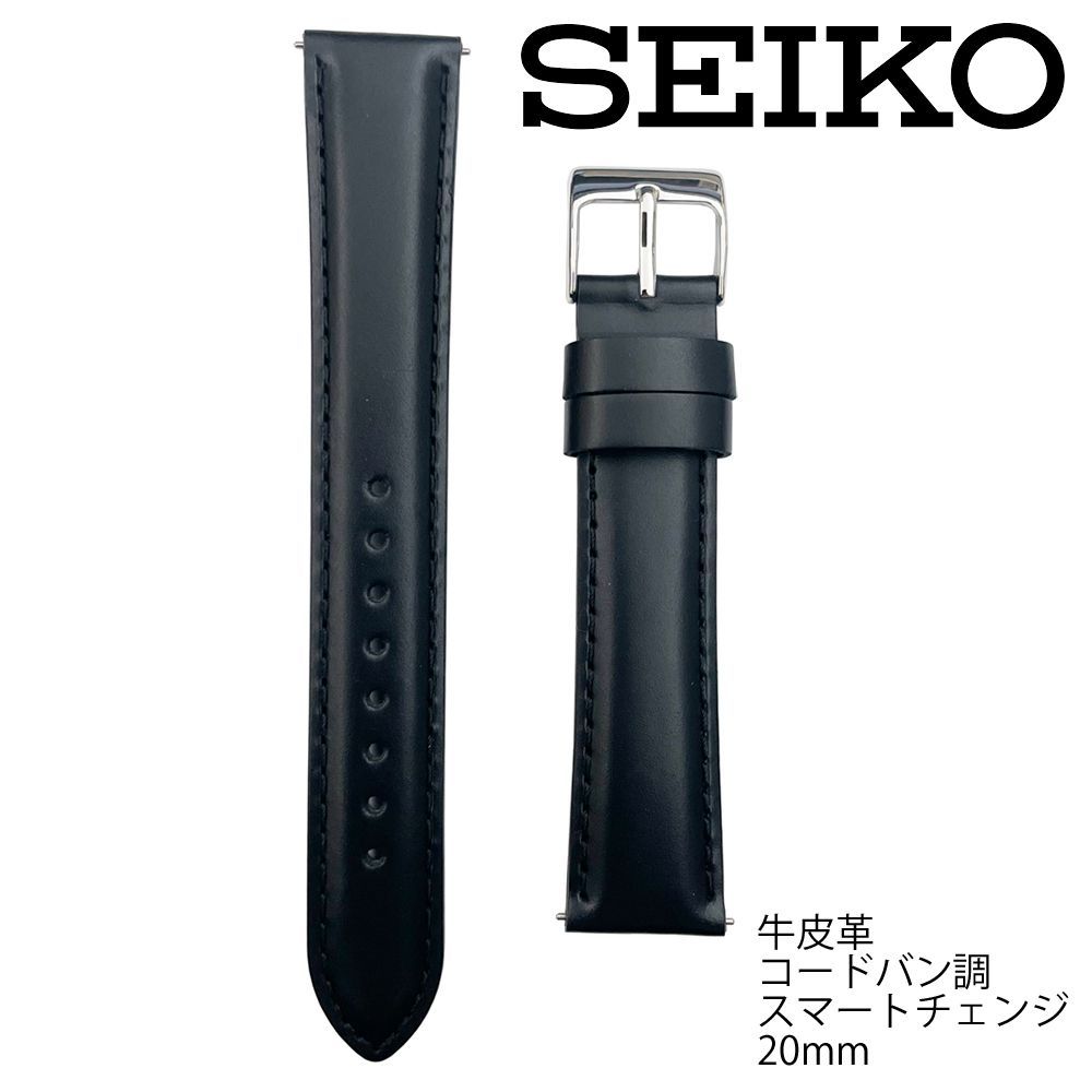 RS12C20BK 20mm 黒 セイコー スマートチェンジ カーフ 牛皮革 コードバン調 切身 小甲丸タイプ 時計ベルト バンド 新品未使用正規品