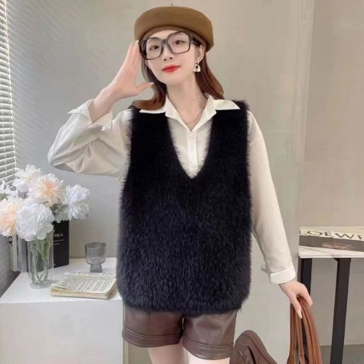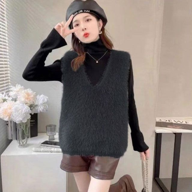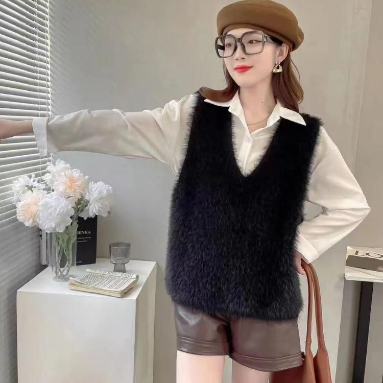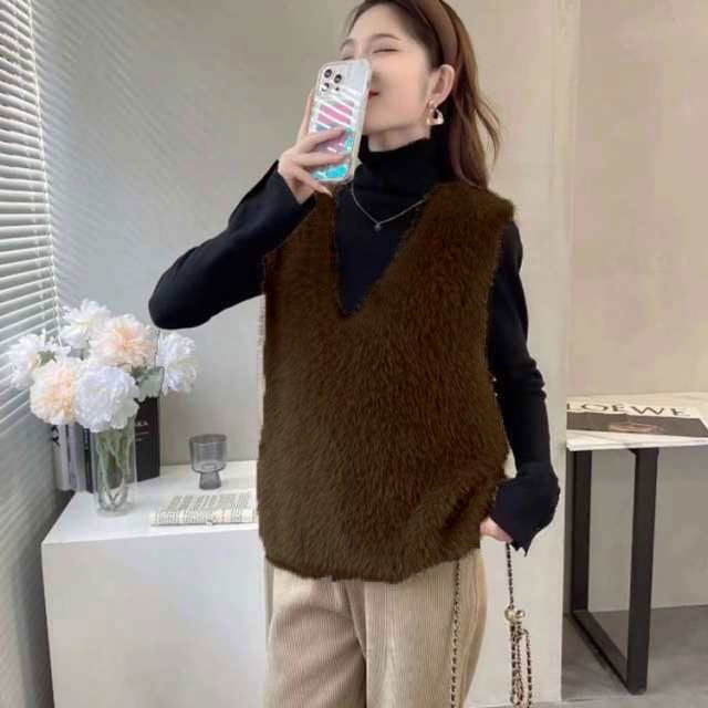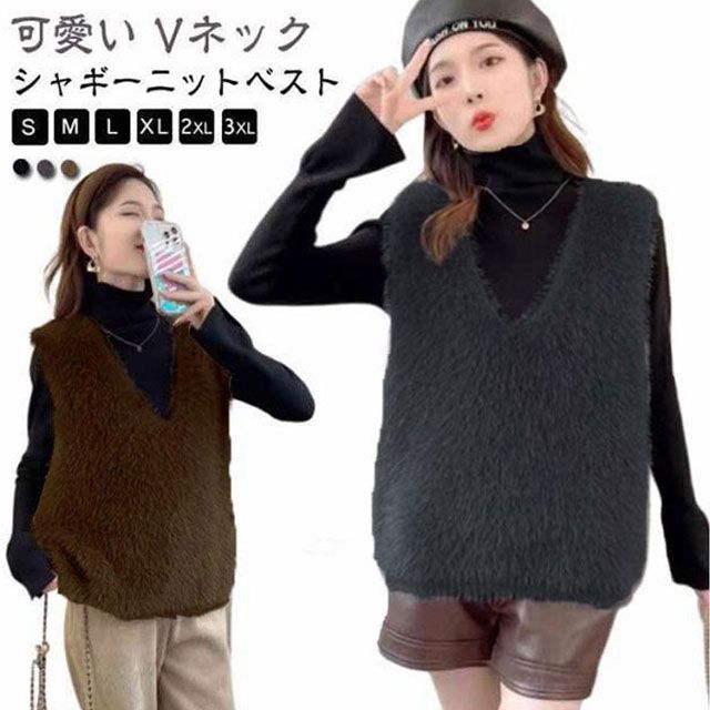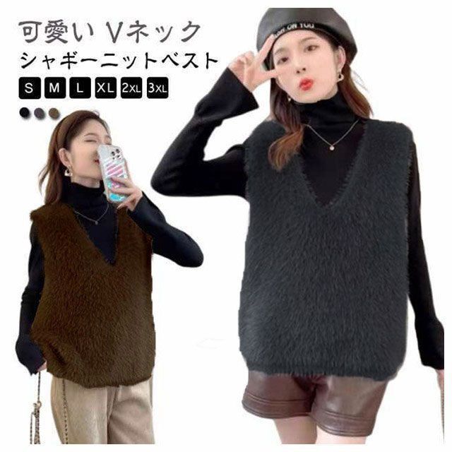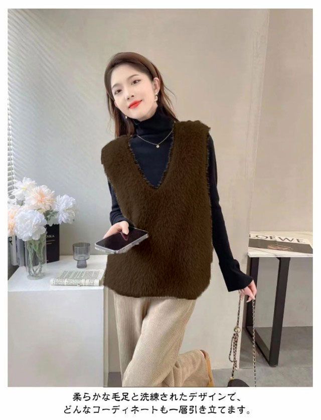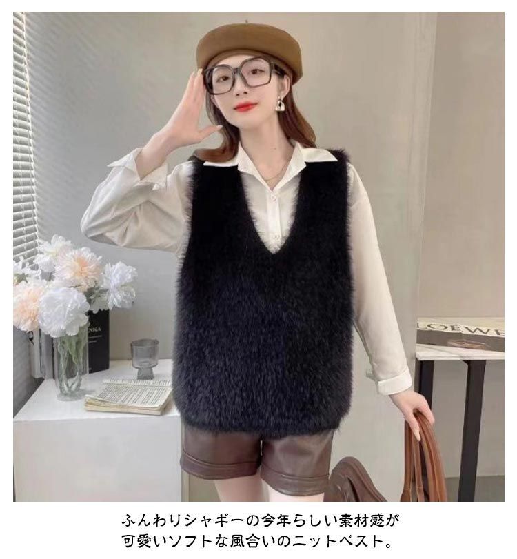 ふんわりシャギーの今年らしい素材感が可愛いソフトな風合いのニットベスト。