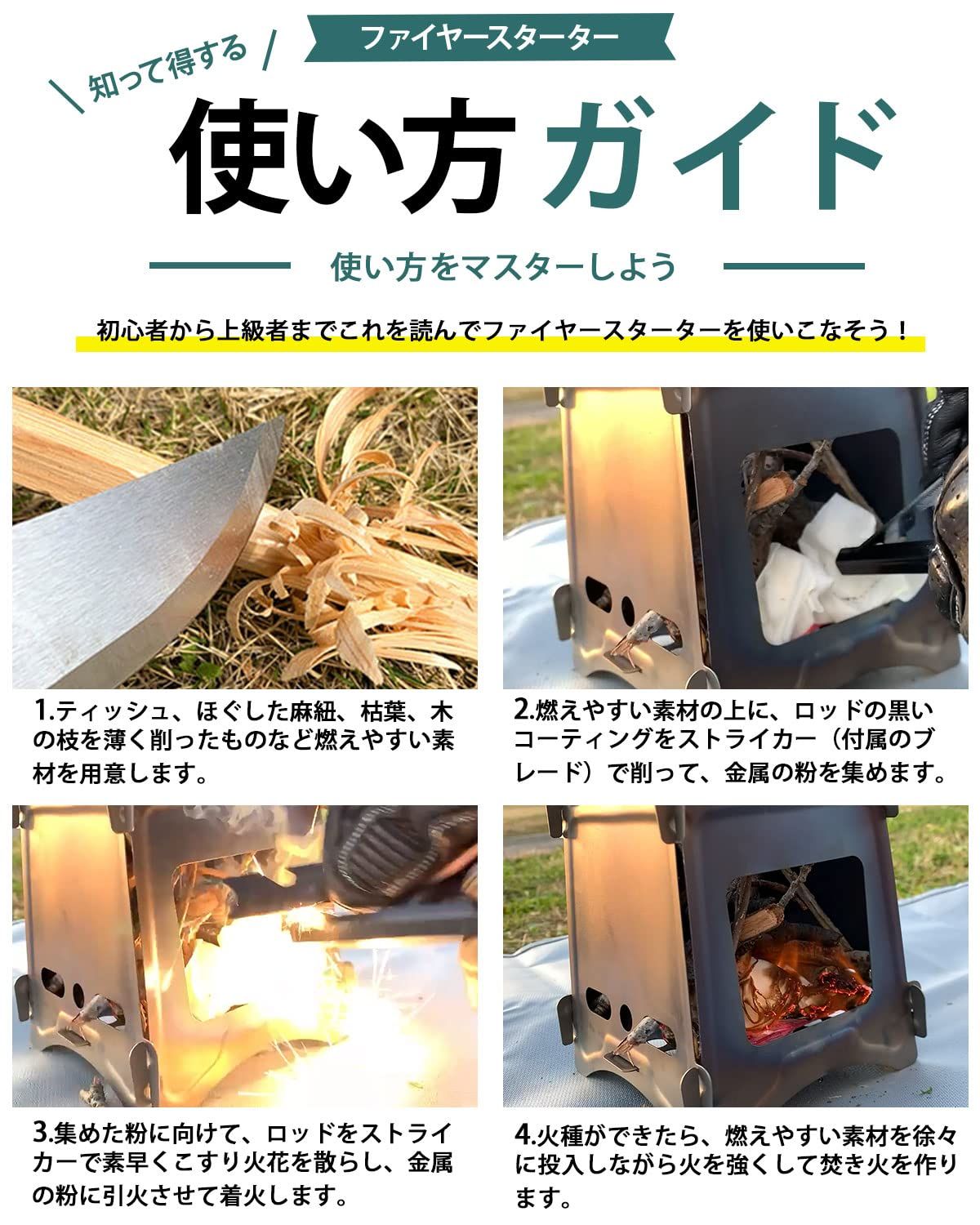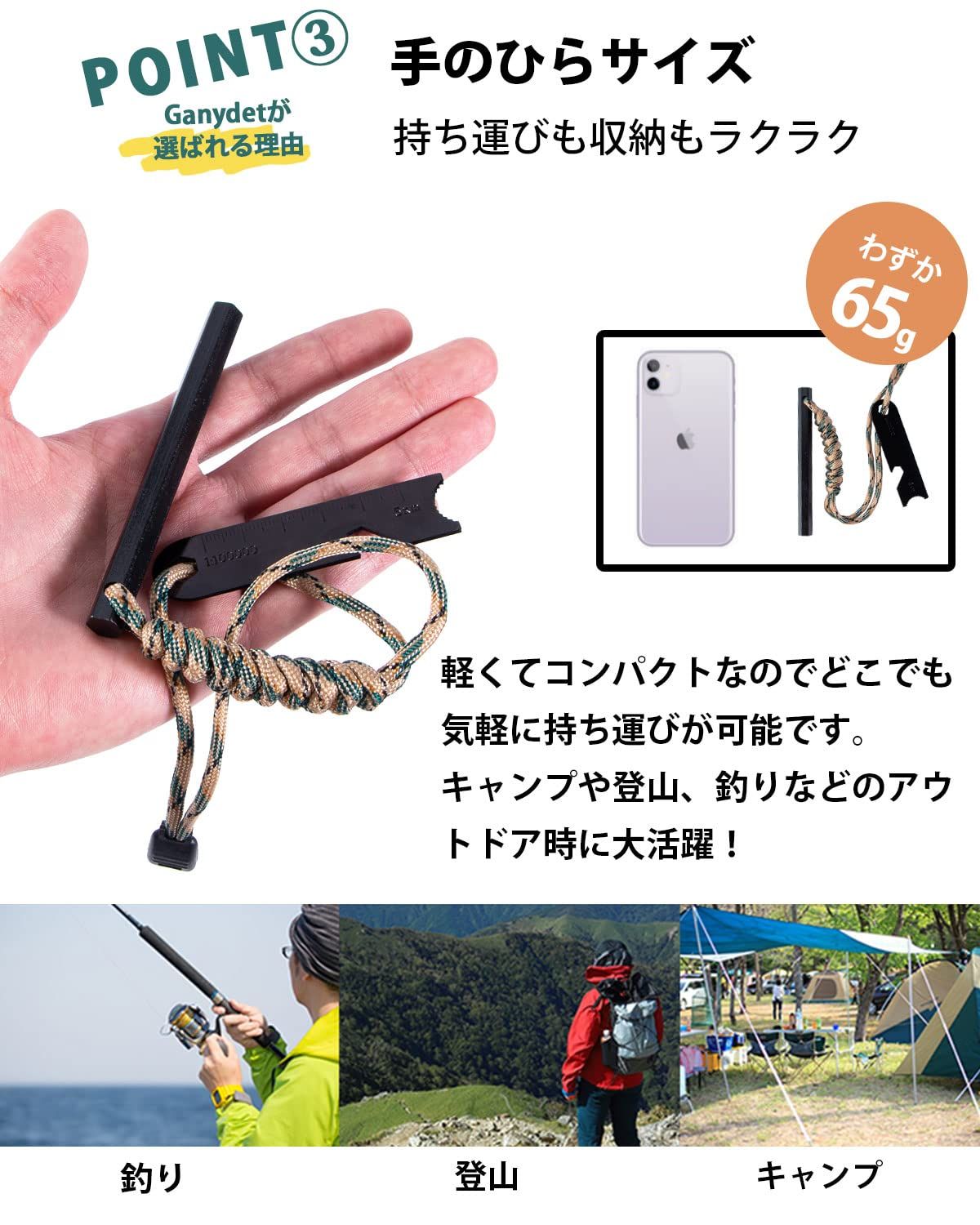 【多用途】キャンプ、ブッシュクラフト、登山、釣り、バーベキューなどのアウトドアシーンだけでなく、災害時の防災グッズとしても重宝します。コンパクトかつ軽量で持ち運びラクラク! 携帯性を重視する方にはぴったりです。