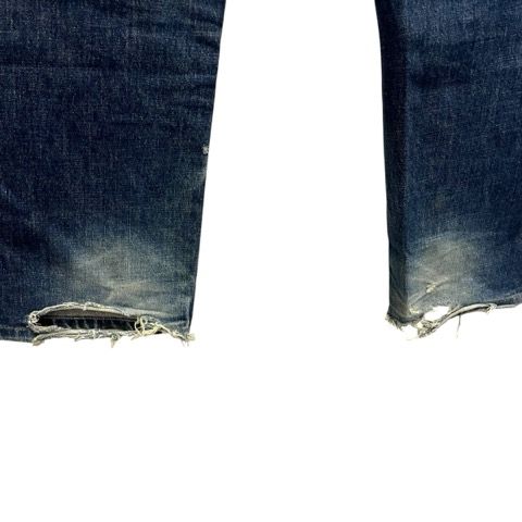 【状態】この商品には下記のようなダメージがあります。 ・全体的にヨレや使用感 ・両裾にダメージ 全体的に中古品としての使用感・着用感が見られるものの、普通にお使いいただける商品です。 ※全体的に中古品としての使用感と上記のようなダメージがありますが、通常使用には支障のない商品です。 掲載写真や記載内容をご確認いただき、ご理解の上ご購入ください。