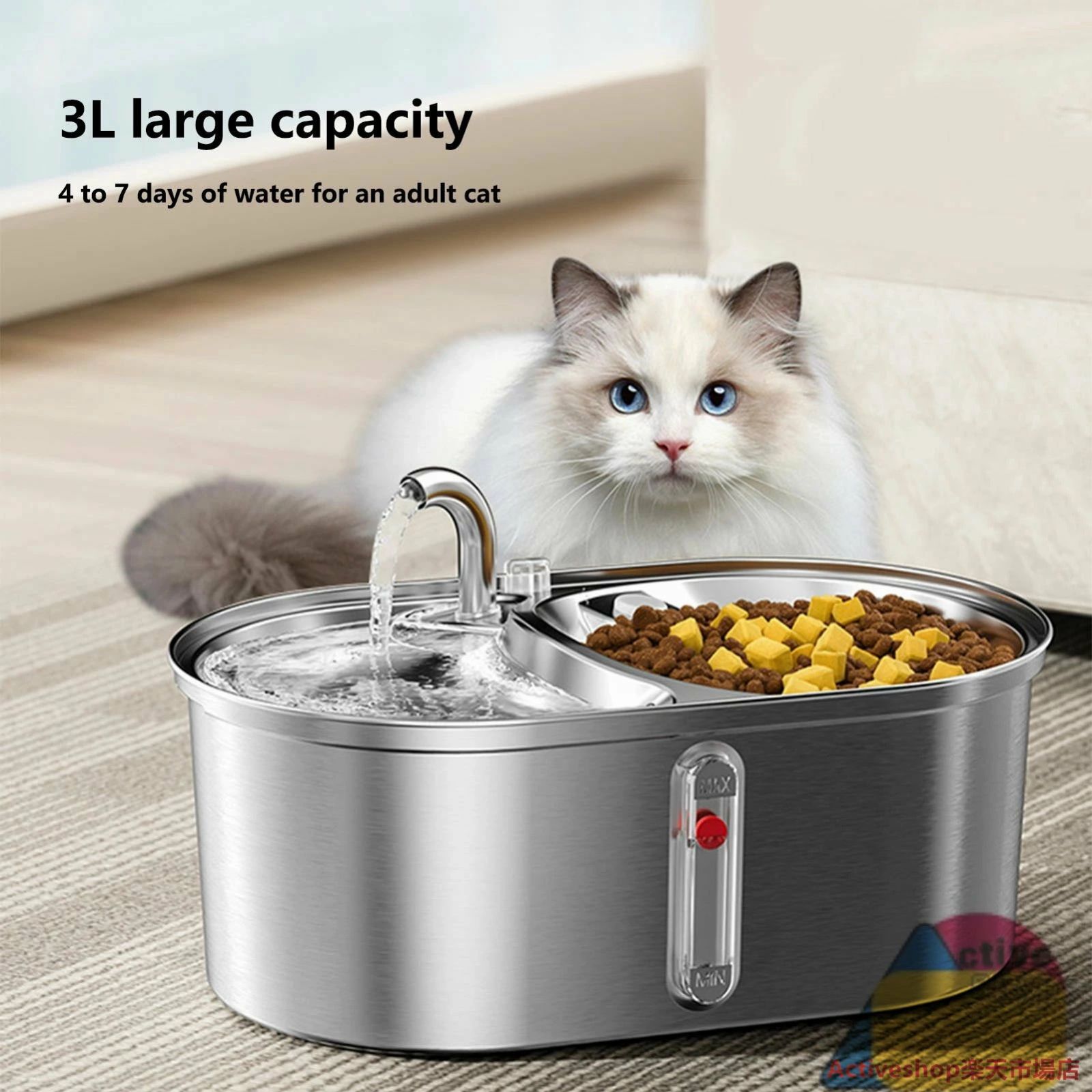 4. 3Lペットウォーターファウンテンフードボウル:自動ペットウォーターディスペンサーは大容量3L設計が特徴で、ペットの長期的な水飲みニーズを満たし、特に暑い季節にはペットが十分に水分補給できるようにします。