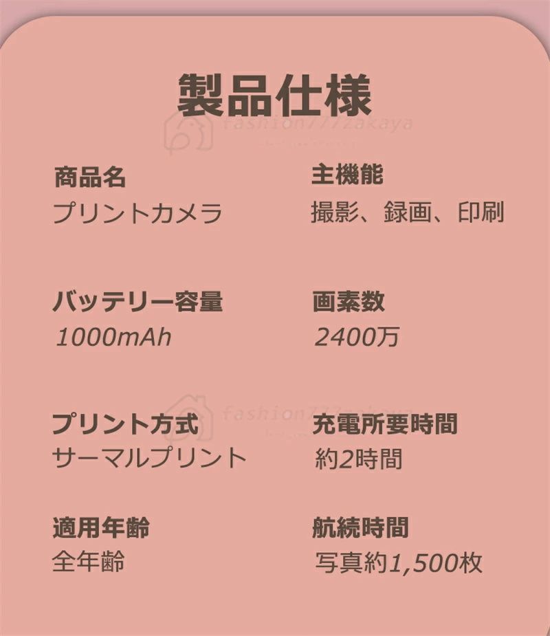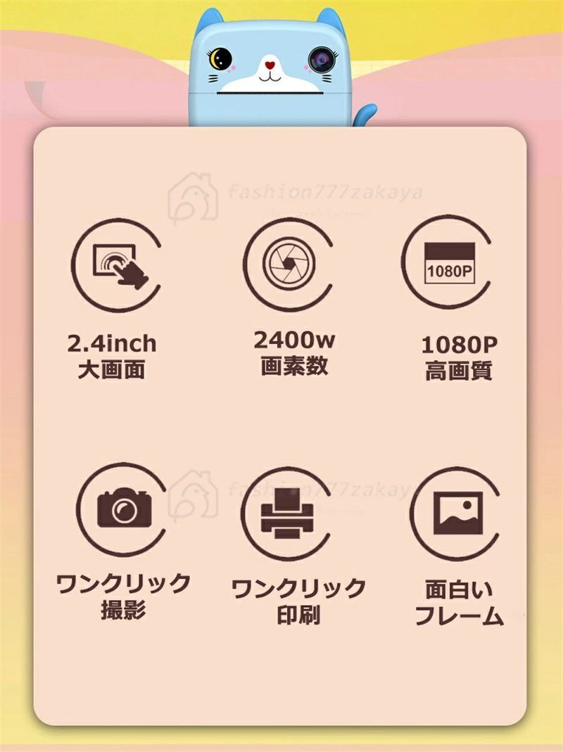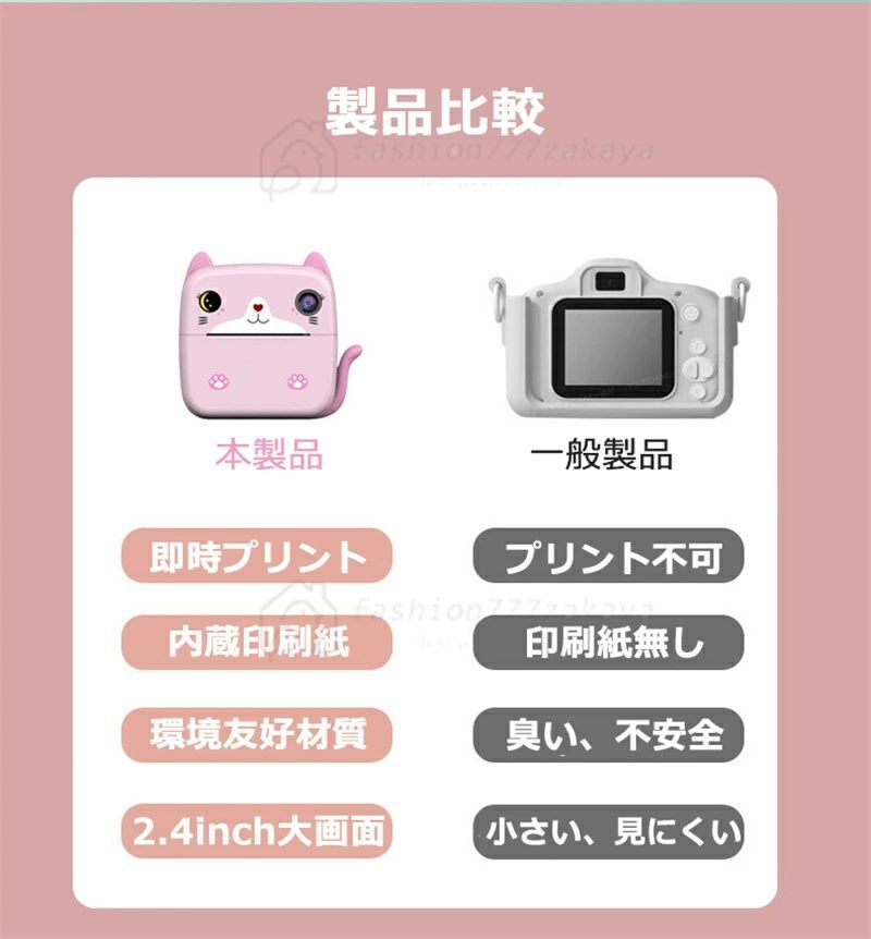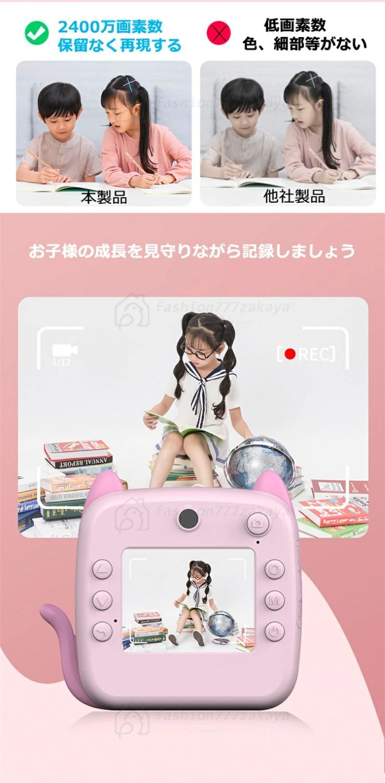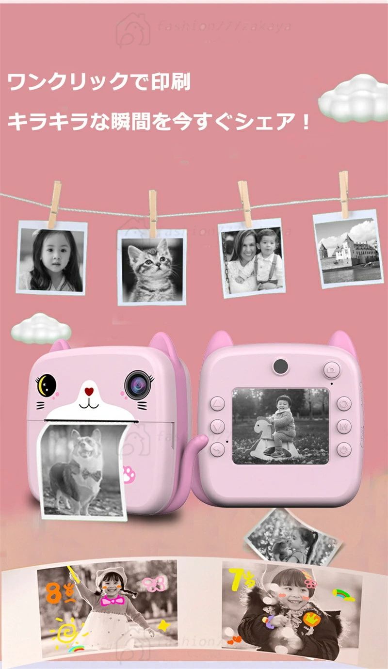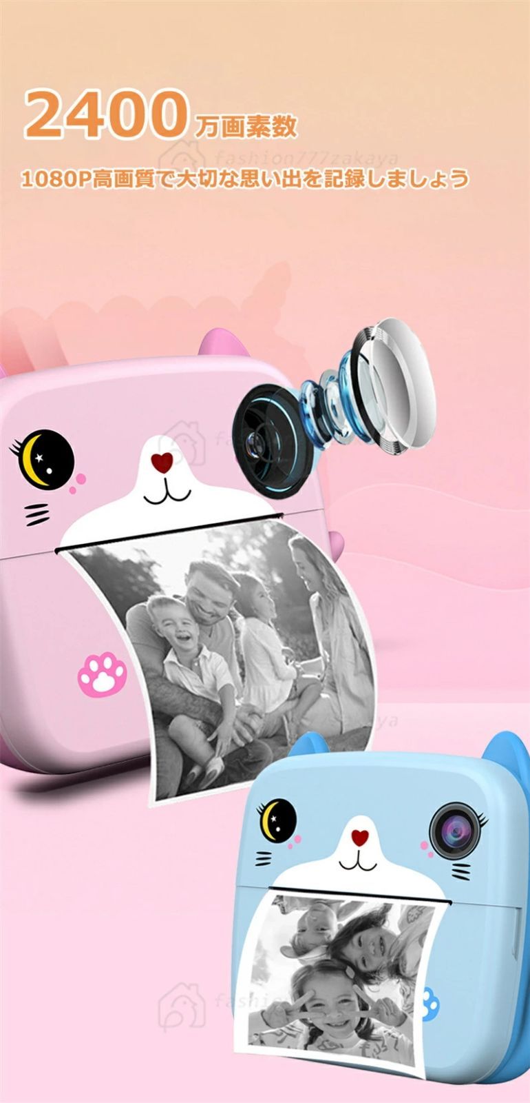 カメラ 子供 インスタントカメラ 撮影 自撮り 録画 2400万画素 1080P プリントカメラ キッズカメラ トイカメラ デジタルカメラ 子供 知育玩具 6歳 7歳 8歳 小学生 女の子 男の子 プレゼント クリスマス【標準セット】