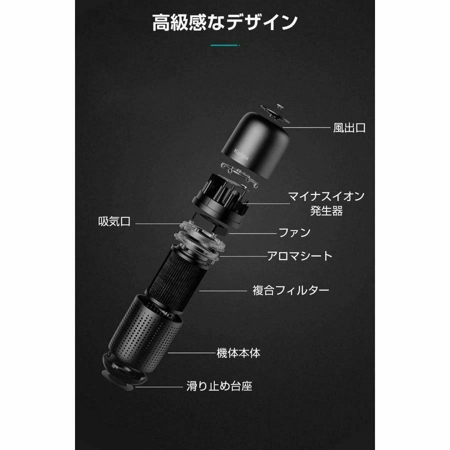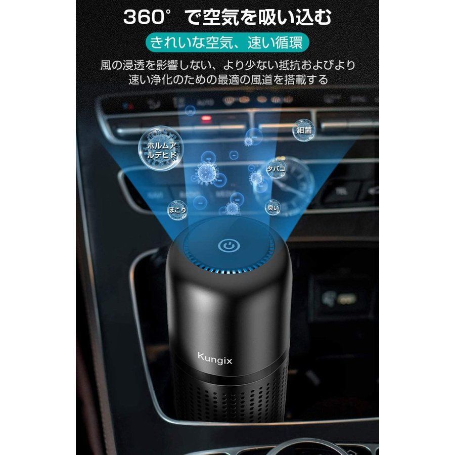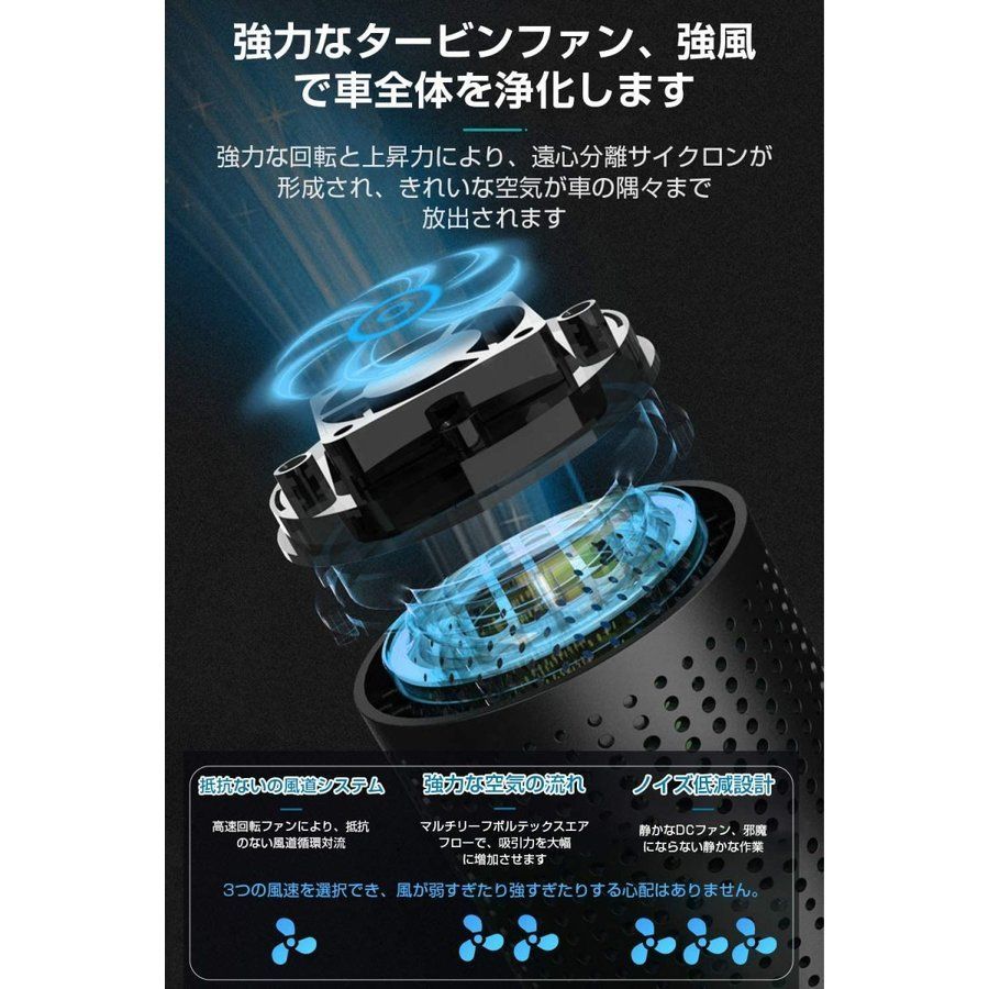 HEPAフィルターにより、花粉・タバコの煙・ペットのニオイな・車内の食べ物・革シート・エアコンの臭い・微生物、およびPM2.5などの0.1umまでの極微粒子を濾過できます。