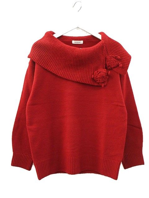 【商品名】インゲボルグ INGEBORG モチーフ付きハイネックセーター レッド 赤 ニット 2024AW トップス