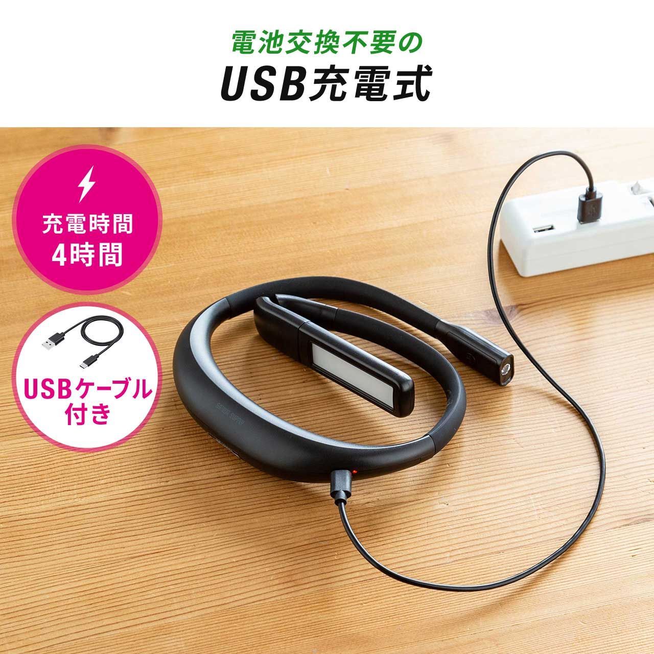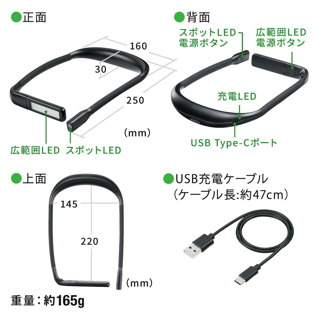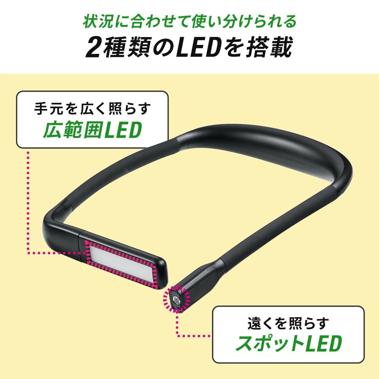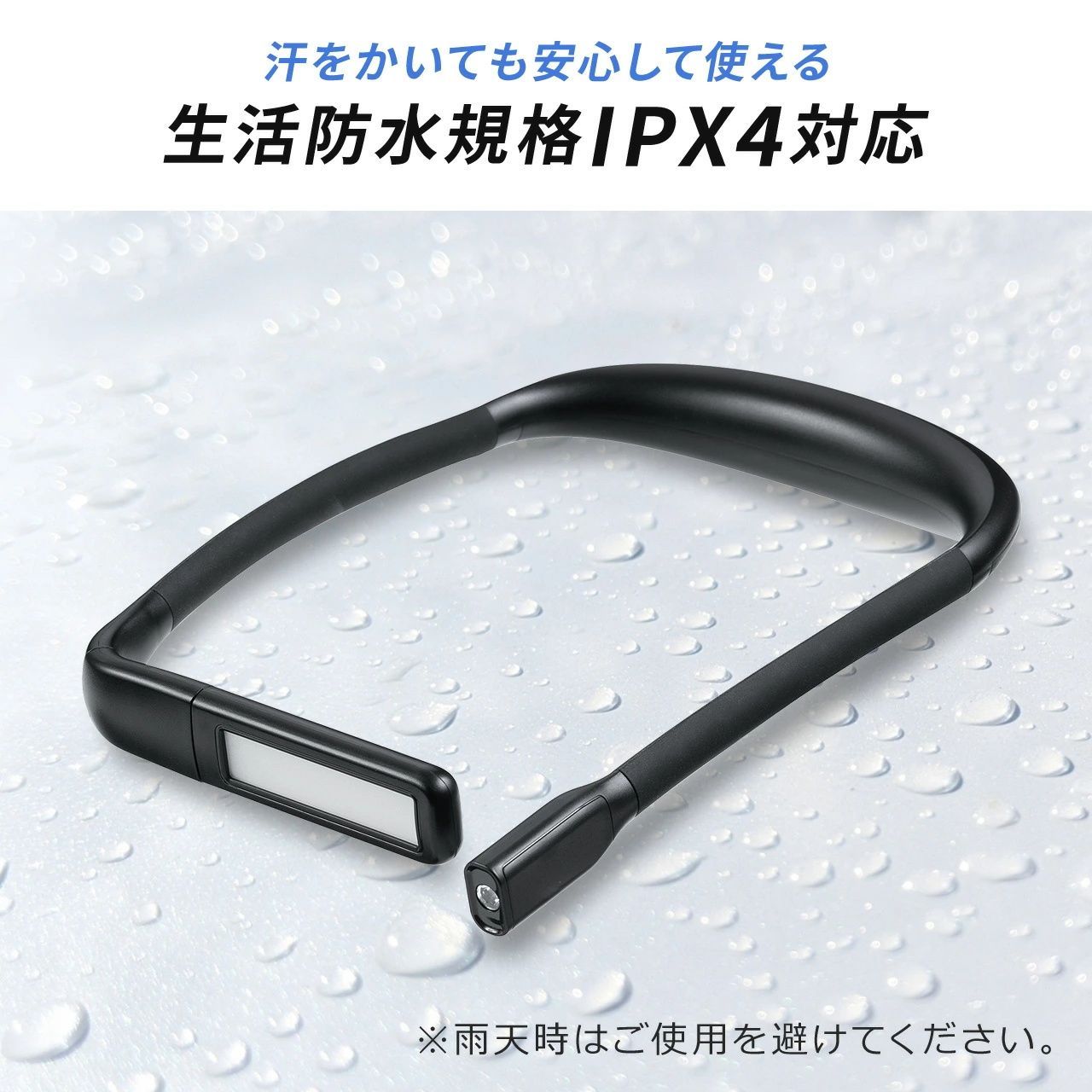 首に欠けてハンズフリーで使用できる、2種類のLEDを搭載した首掛けネックライト。フレキシブルアームで自由な向きに明かりを調整可能。最大180ルーメンで、IPX4の防水規格取得。