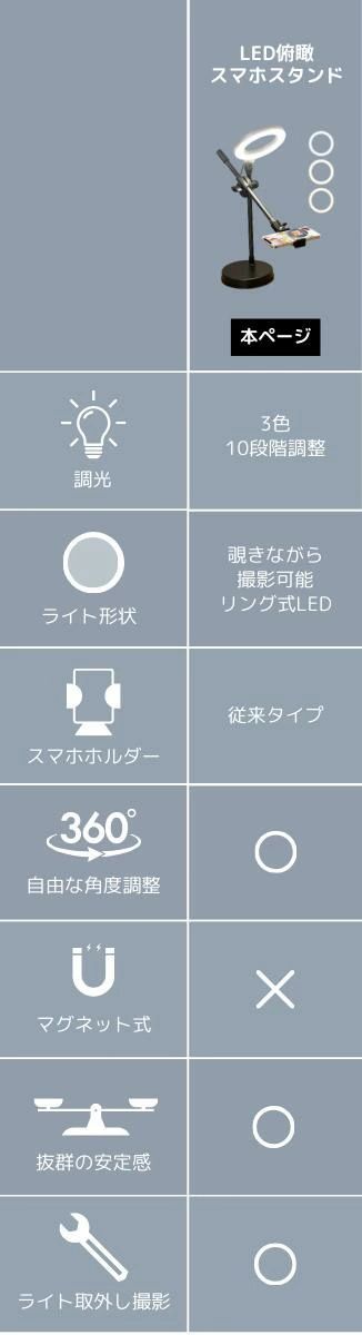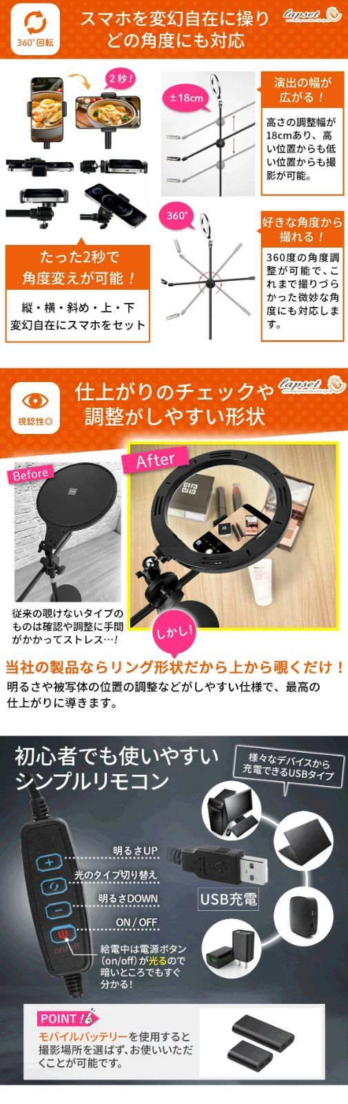 横のポールが360度自由に回転する構造なので、真上からでも真横からでもお好みの角度から撮影することができます。