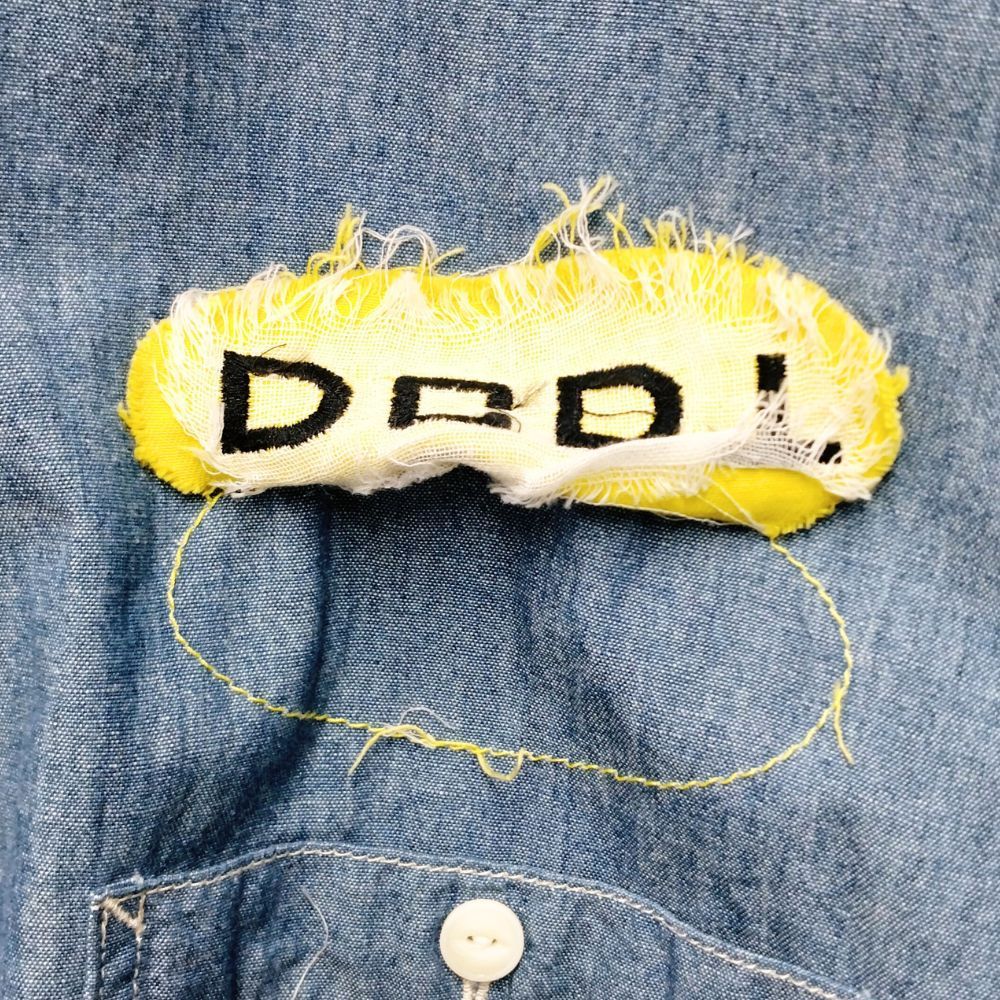 ユーズド品で着用感あり、左胸ワッペンに縫い付け外れがあります(画像参照)。