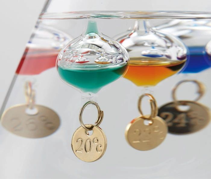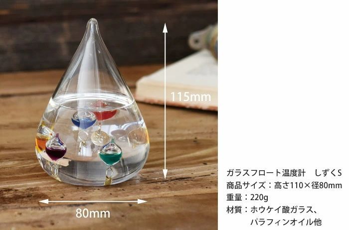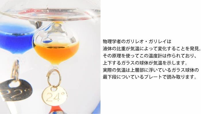 ※ガラス球体5個(紫18℃、緑20℃、黄色22℃、青24℃、赤26℃)
