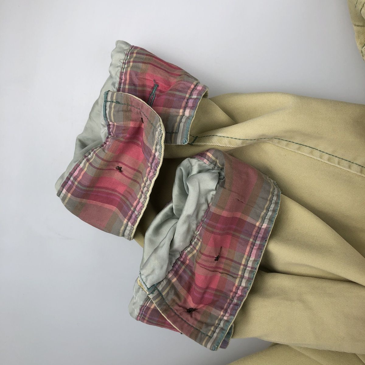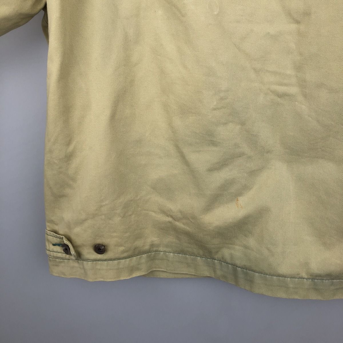 写真と実物とでは色味が異なる恐れがございます。この商品は、色褪せや変色、色むらを古着ならではのリアルな風合いとして味わえる一着です。