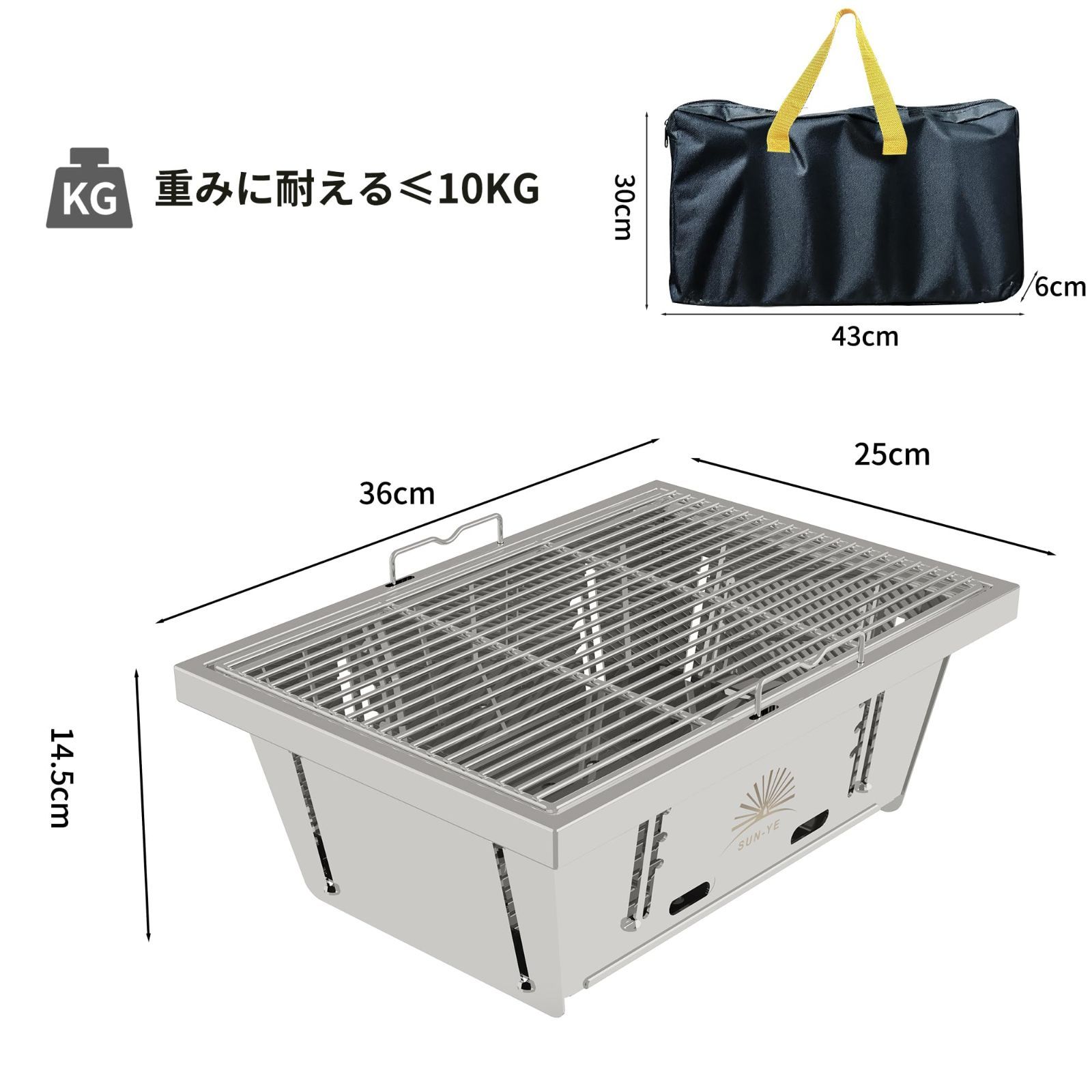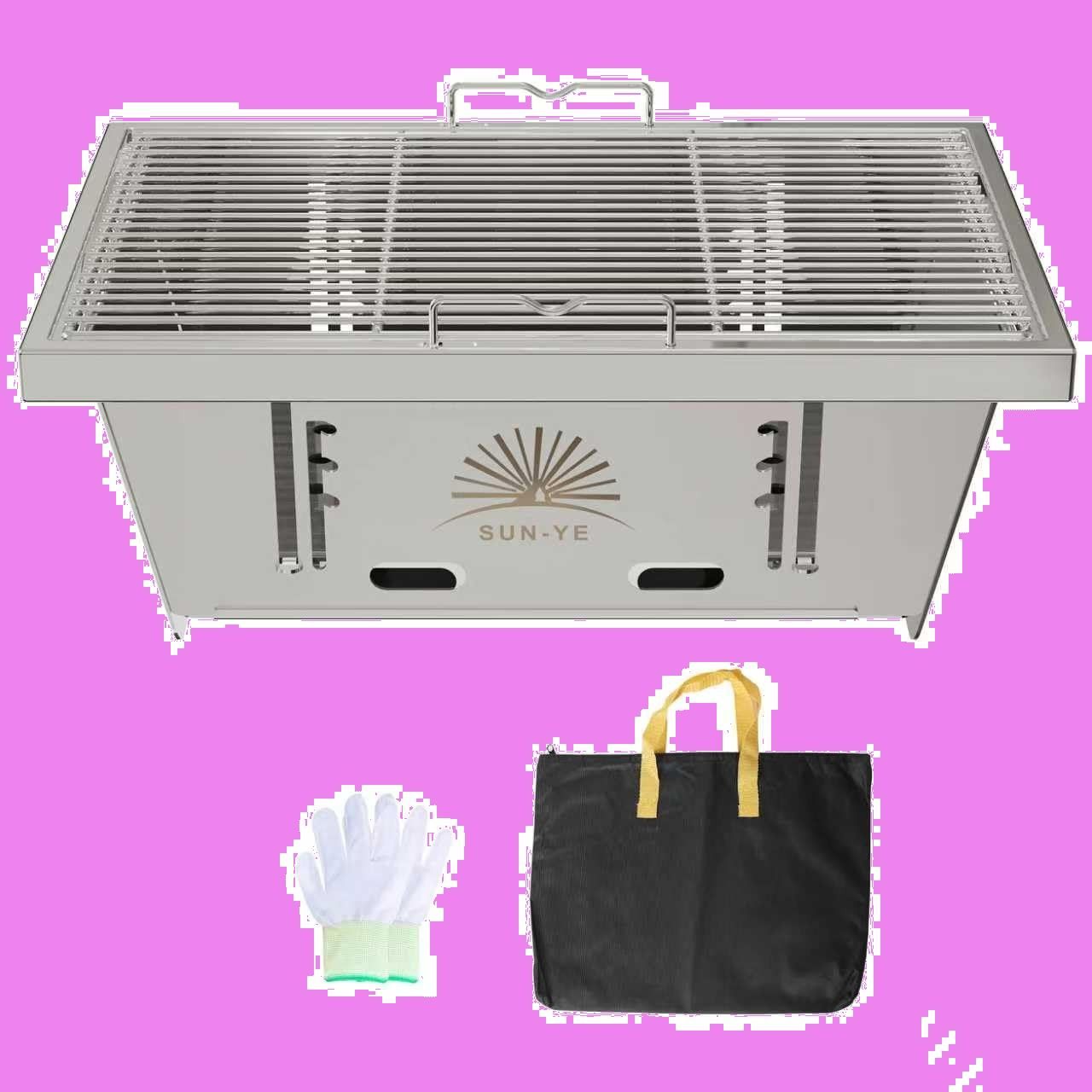 SUN-YE 折り畳みコンロ バーベキュー コンロ BBQグリル 焚き火台 igtテーブル用 調整可能な炉内燃焼カーボンプレートの高さ ステンレス製 瞬時に展開・収納 ステンレス鋼 1枚 ステンレス棒 2本 収納袋付き