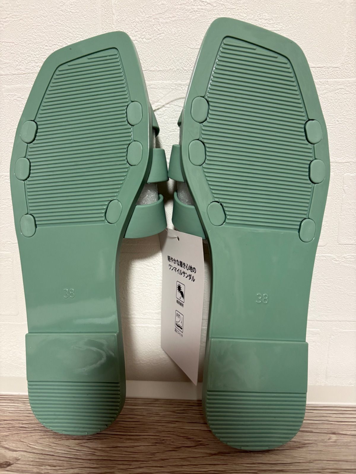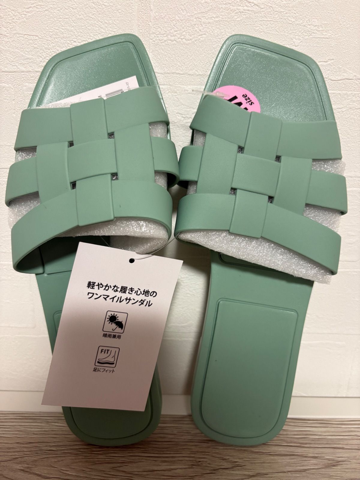 メッシュ編み込みビーチサンダル M 23~23.5cm レディース グリーン フラットサンダル