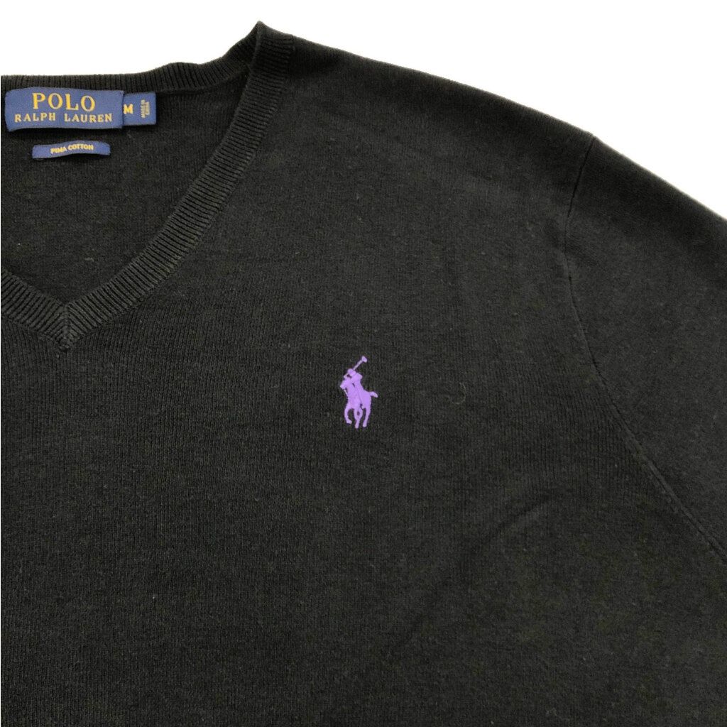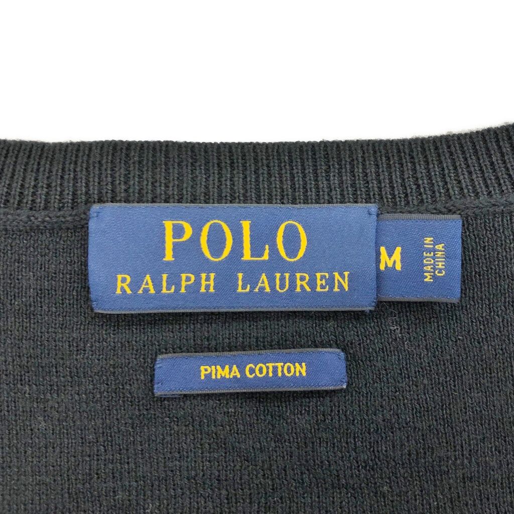 Polo by Ralph Lauren ポロ ラルフローレン Vネック コットンニットセーター ブラック(メンズ M)中古 古着 V8830