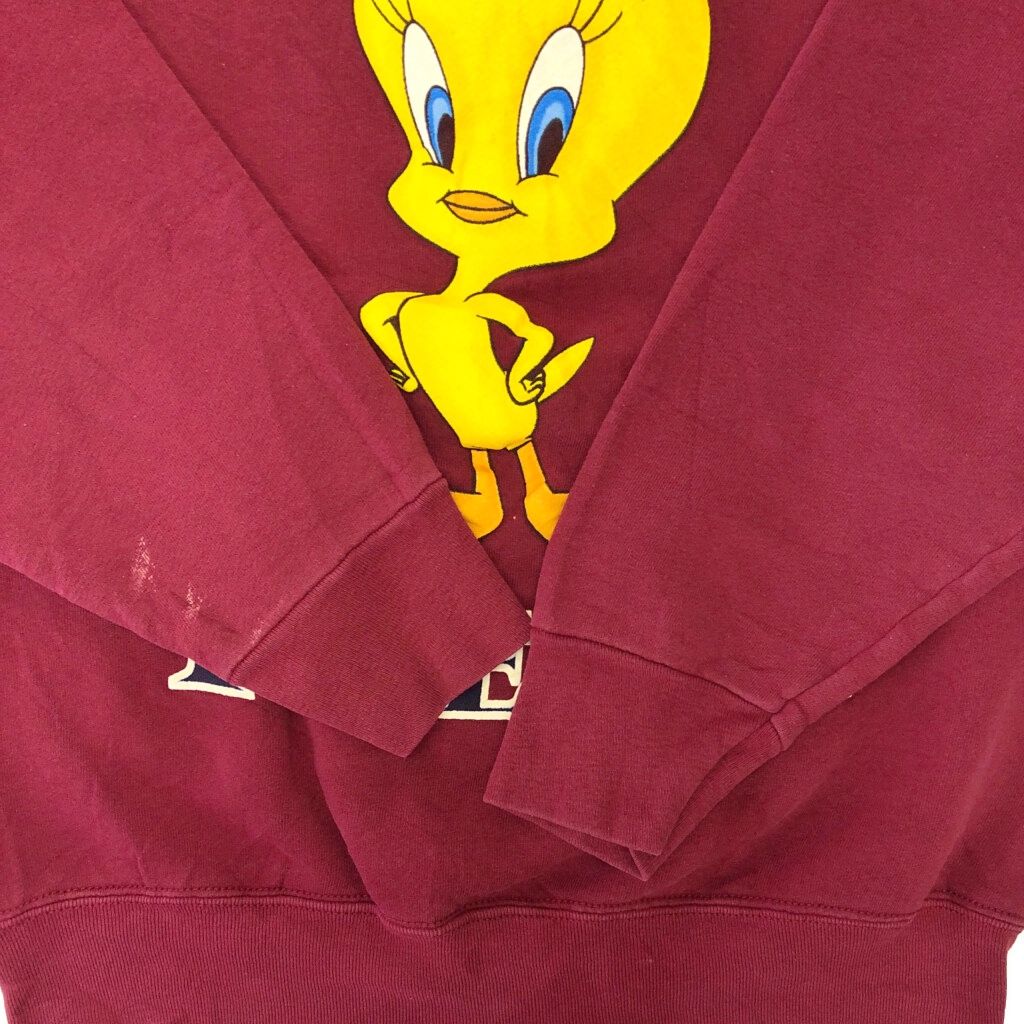 90年代 USA製 WARNER BROS ワーナーブラザーズ Tweety トゥイーティー スウェット キャラクター ワインレッド(メンズ M)中古 古着 V8836