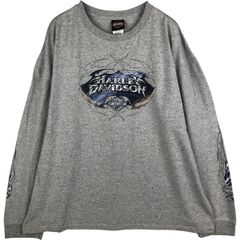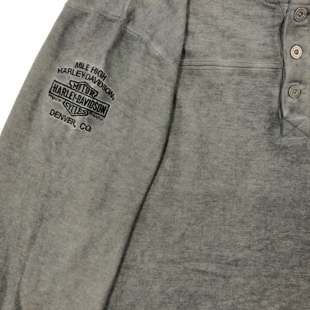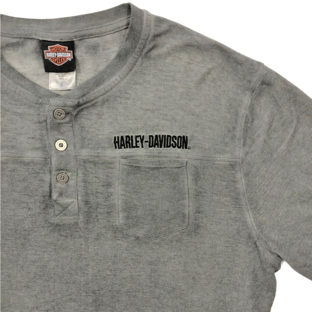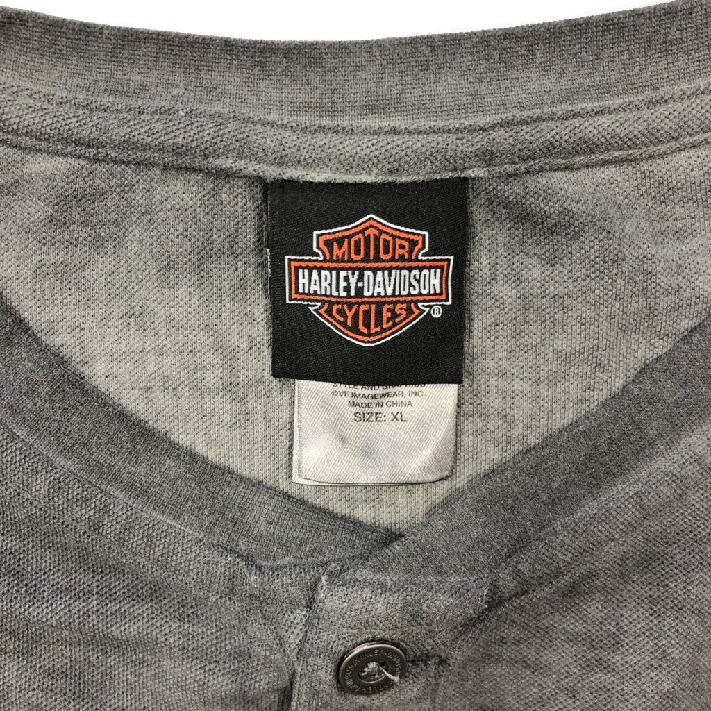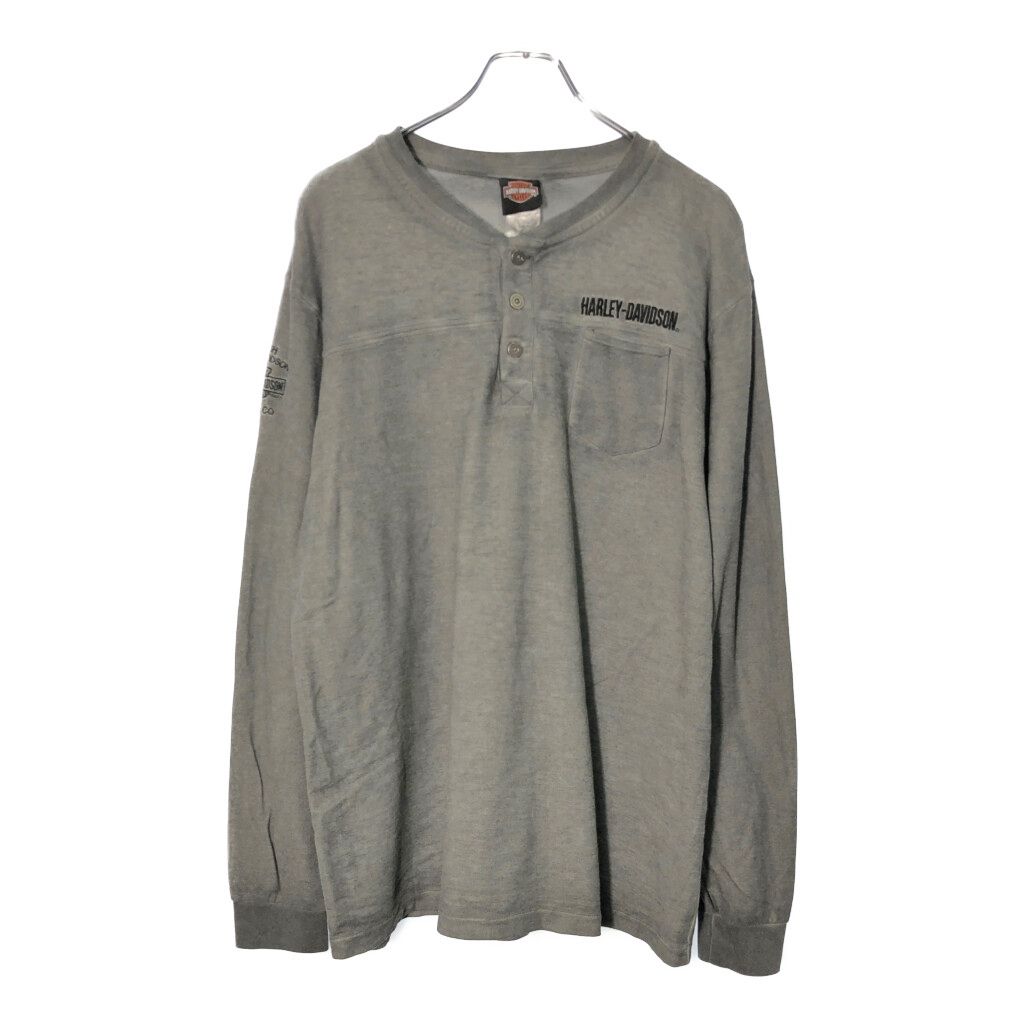 HARLEY DAVIDSON ハーレーダビッドソン ヘンリーネック 長袖ポケットTシャツ モーターサイクル グレー(メンズ XL)中古 古着 V8847
