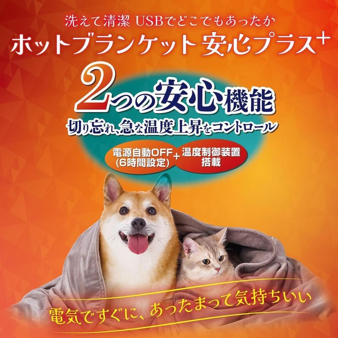 2つの安心機能をプラスした電気ですぐに温まって気持ちいい、なめらかな肌ざわりでやわらかいホットブランケット。使いやすいレギュラーサイズと、広々、多頭飼いにも使いやすいワイドサイズの2サイズ。