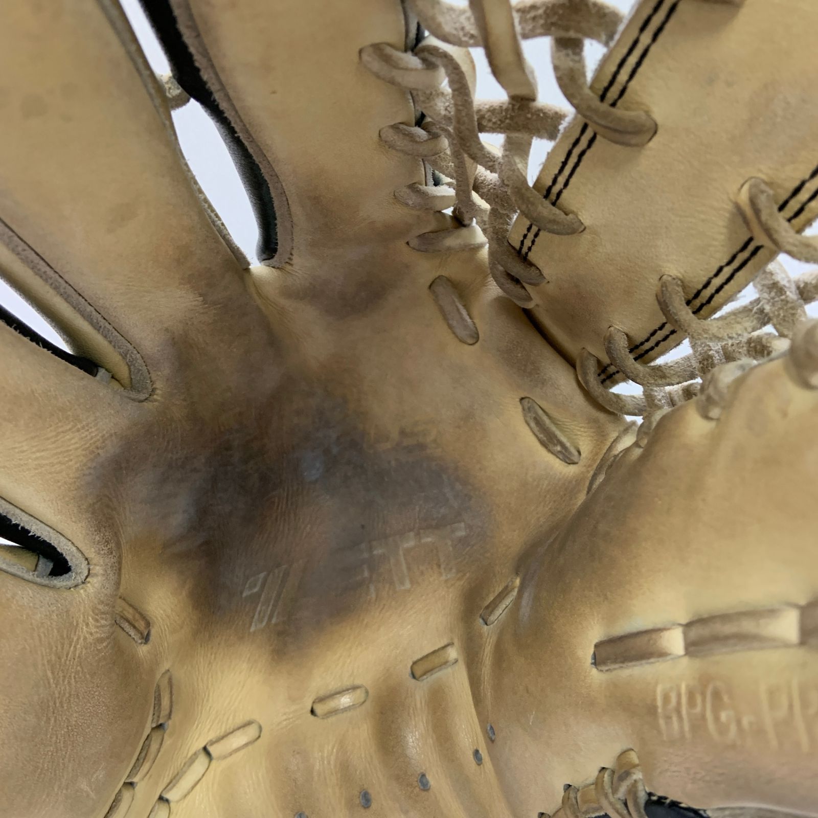■備考:中古品で全体的に強い使用感がある商品です。傷、汚れ、色あせ、へたり、擦れ等の傷みがある場合がありますので、詳しい状態は画像にてご確認ください。見落としの傷や汚れ等がある場合がございます。ご了承の上ご購入下さい。型はついていませんが、柔らかくなっています。捕球面にグリスが滲み出ています。