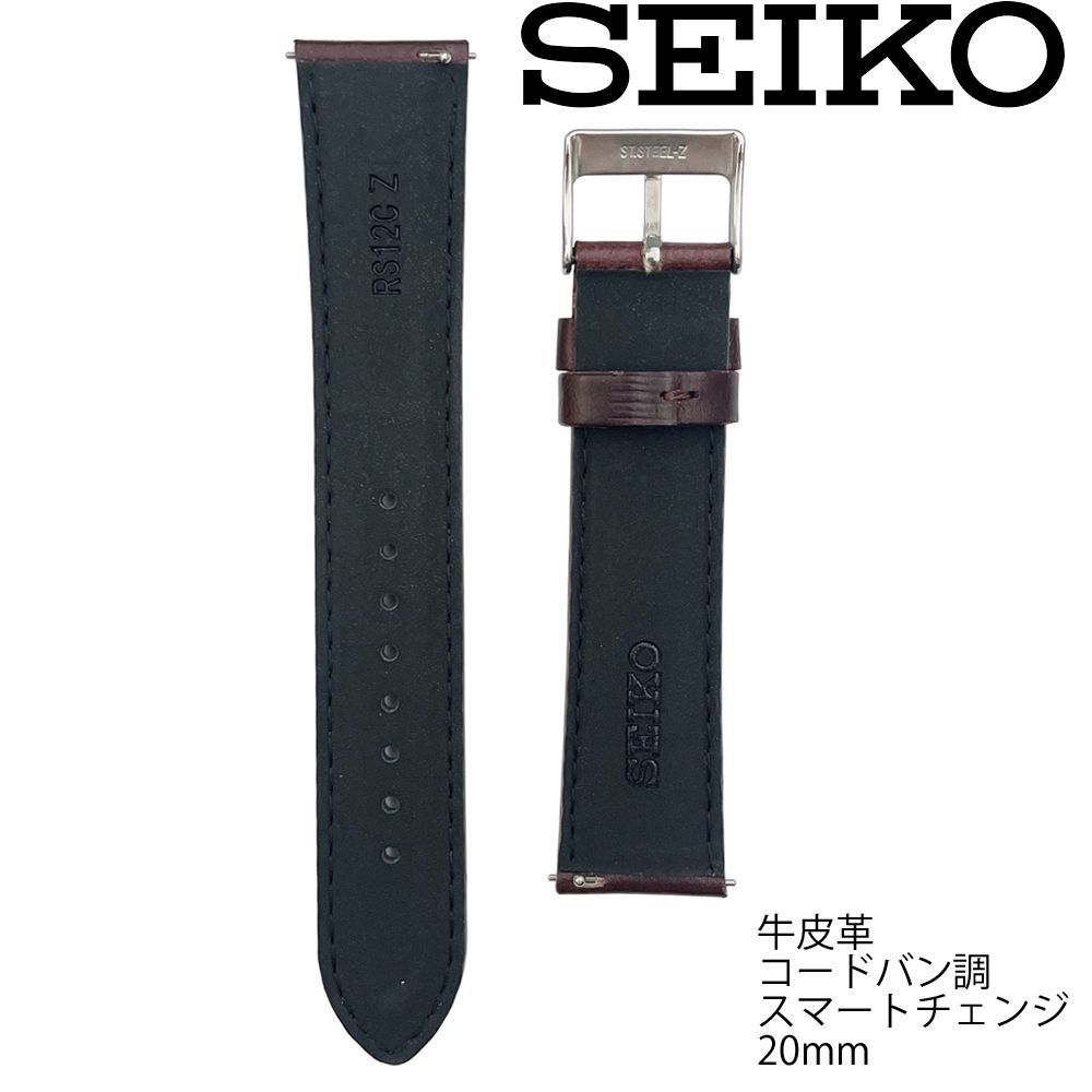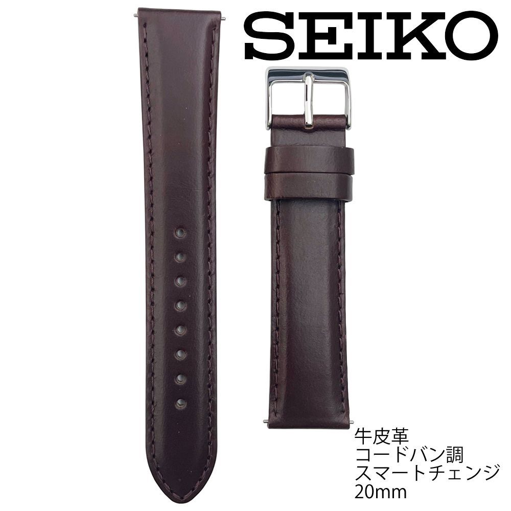 RS12C20DBN 20mm こげ茶 セイコー スマートチェンジ カーフ 牛皮革 コードバン調 切身 小甲丸タイプ 時計ベルト バンド 新品未使用正規品