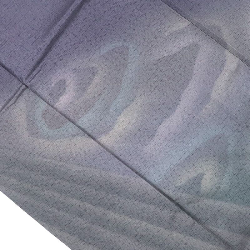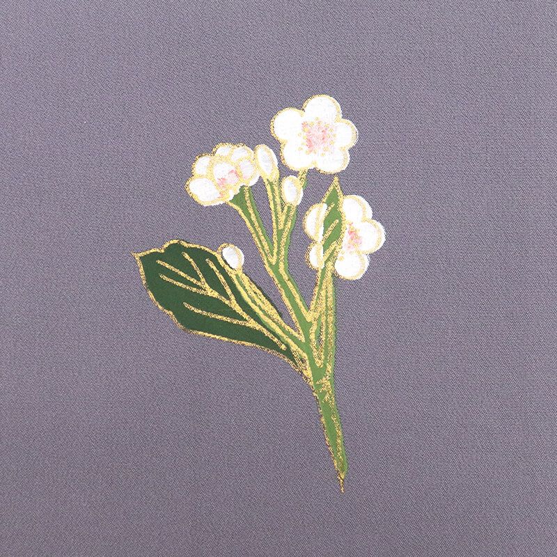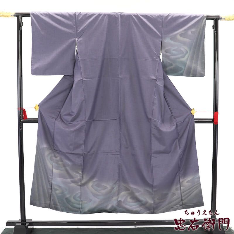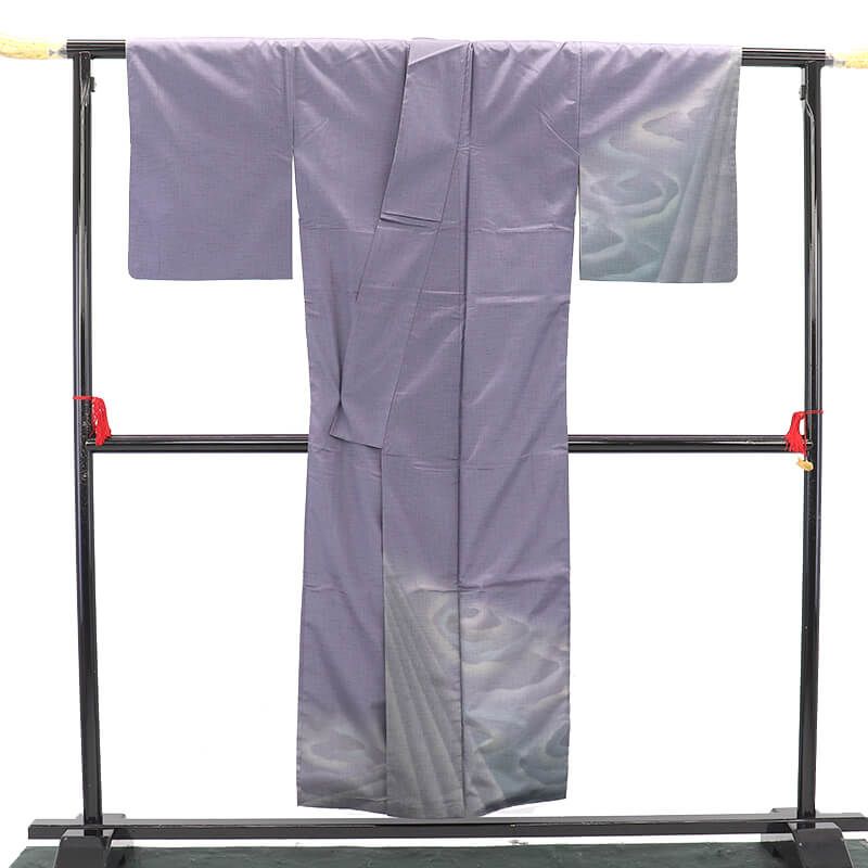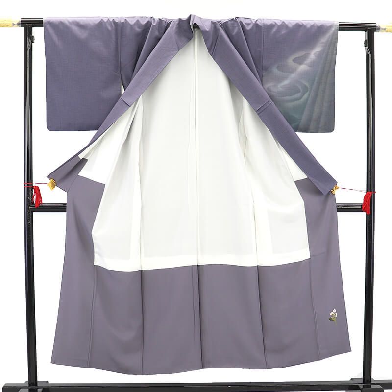 灰紫の落ち着きのある地色に、 ぼかしを効果的に用いた上品な柄の紬付下げ。 八掛には小さなお花の柄が入っております。水の流れと差し込む光を抽象的に表現したような美しい柄行きは、 大人の女性のおしゃれ着にピッタリ。 紬付下げの為、格調高いフォーマルシーンには不向きです。 おしゃれを楽しむプラス1枚のお着物にピッタリな、 品格とおしゃれ感のあるお着物となっております。